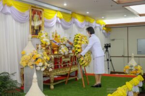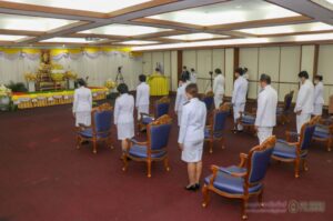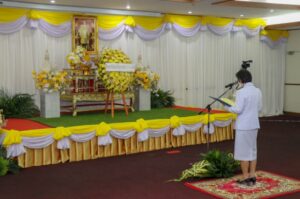 วันที่ 13 ตุลาคม 2564 เวลา 08.00 น. นางสาวจรัสศรี ยิ้มยวน บุคลากรสำนักวิทยบริการและเทคโนโลยีสารสนเทศ เข้าร่วมกิจกรรมน้อมรำลึกในพระมหากรุณาธิคุณเนื่องในวันคล้ายวันสวรรคต พระบาทสมเด็จพระบรม ชนกาธิเบศร มหาภูมิพลอดุลยเดชมหาราช บรมนาถบพิตร 13 ตุลาคม 2564 ณ ห้องประชุมชั้น 2 อาคารฝึกประสบการณ์วิชาชีพล้านช้าง โดยมี ผศ.อัมพาพรรณ พงศ์ผลาดิสัย รองอธิการบดีฝ่ายวิชาการ มหาวิทยาลัยราชภัฏสุรินทร์ เป็นประธานวางพวงมาลา กล่าวน้อมรำลึกในพระมหากรุณาธิคุณ และนำบุคลากรยืนสงบนิ่งเป็นเวลา 89 วินาที ซึ่งการจัดกิจกรรมดังกล่าวได้มีการถ่ายทอดสัญญาณไปยังกระทรวงการอุดมศึกษา วิทยาศาสตร์ วิจัยและนวัตกรรม (อว.) พร้อมกันกับสถาบันอุดมศึกษาอื่น ๆ ด้วย / ขอบคุณภาพจากงานประชาสัมพันธ์ มหาวิทยาลัยราชภัฏสุรินทร์
