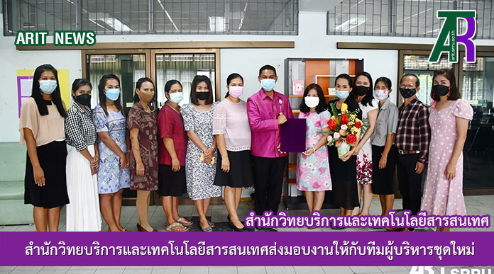 วันที่ 14 ตุลาคม 2564 เวลา 10.30 น. ผู้ช่วยศาสตราจารย์ ดร.นิศานาถ แก้ววินัด รักษาราชการแทน ผู้อำนวยการสำนักวิทยบริการและเทคโนโลยีสารสนเทศ ส่งมอบงานให้กับทีมผู้บริหารชุดใหม่ซึ่งมี ผู้ช่วยศาสตราจารย์สังวาลย์ ตุกพิมาย ผู้อำนวยการสำนักวิทยบริการและเทคโนโลยีสารสนเทศ เป็นผู้รับมอบ โดยมีบุคลากรสำนักวิทยบริการฯ เข้าร่วมโดยพร้อมเพรียงกัน