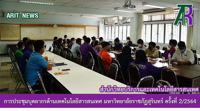 วันที่ 28 ตุลาคม 2564 เวลา 13.00 น. ผู้ช่วยศาสตราจารย์สังวาลย์ ตุกพิมาย ผู้อำนวยการสำนักวิทยบริการและเทคโนโลยีสารสนเทศ เป็นประธานการประชุมบุคลากรด้านเทคโนโลยีสารสนเทศ มหาวิทยาลัยราชภัฏสุรินทร์ ครั้งที่ 2/2564 ณ ห้องโสตทัศนศึกษา 2 ชั้น 4 อาคารสำนักวิทยบริการฯ เพื่อกำหนดนโยบายและความร่วมมือในการพัฒนาระบบเทคโนโลยีดิจิทัล ร่วมกับตัวแทนจากคณะ/สำนัก/สถาบัน จำนวน 25 ท่าน โดยมีระเบียบวาระเพื่อพิจารณา ดังต่อไปนี้ 1. นโยบายการให้บริการซ่อมบำรุงอุปกรณ์คอมพิวเตอร์ 2. นโยบายการจัดระเบียบเว็บไซต์หน่วยงาน 3. นโยบายการจัดซื้ออุปกรณ์เครือข่ายของคณะ/สำนัก/สถาบัน 4. นโยบายการแบ่งพื้นที่ความรับผิดชอบสำหรับการ Monitor ระบบ 5. นโยบายอื่น ๆ ที่เกี่ยวข้อง