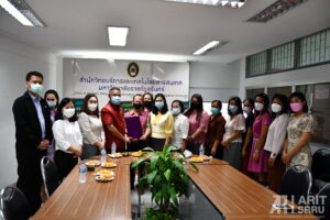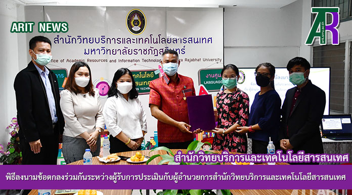 วันที่ 12 พฤศจิกายน 2564 เวลา 09.30 น. ผู้ช่วยศาสตราจารย์สังวาลย์ ตุกพิมาย ผู้อำนวยการสำนักวิทยบริการและเทคโนโลยีสารสนเทศ เป็นประธานในพิธีลงนามข้อตกลงร่วมกันระหว่างผู้รับการประเมินกับผู้อำนวยการสำนักวิทยบริการและเทคโนโลยีสารสนเทศ ในรอบ 6 เดือน (1 ตุลาคม 2564 – 31 มีนาคม 2565) โดยมีผู้บริหารและบุคลากรฝ่ายงานต่างๆ เข้าร่วมในกิจกรรมนี้