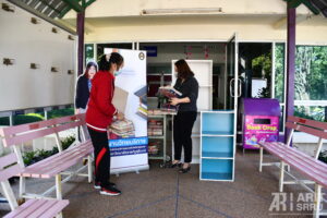 วันที่ 7 ธันวาคม 2564 เวลา 10.00 น. งานวิทยบริการ จัด กิจกรรมห้องสมุดสัญจรแบ่งปันทรัพยากรสู่ชุมชน โดยมี ผู้ช่วยศาสตราจารย์สังวาลย์ ตุกพิมาย ผู้อำนวยการสำนักวิทยบริการและเทคโนโลยีสารสนเทศ อาจารย์ ดร.สุภาสินี วิเชียร รองผู้อำนวยการสำนักวิทยบริการฯ ฝ่ายวิทยบริการ และบุคลากรสำนักวิทยบริการฯ มอบทรัพยากรสารสนเทศให้แก่คณะครูโรงเรียนบ้านสวาย ต.สวาย อ.เมือง จ.สุรินทร์ เพื่อนำทรัพยากรสารสนเทศ จัดบริการให้แก่นักเรียนในโรงเรียน