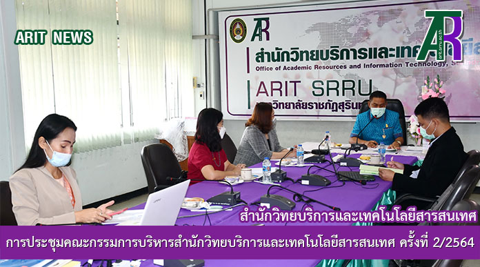 วันที่ 22 ธันวาคม 2564 เวลา 09.00 น. ผู้ช่วยศาสตราจารย์สังวาลย์ ตุกพิมาย ผู้อำนวยการสำนักวิทยบริการและเทคโนโลยีสารสนเทศ เป็นประธานการประชุมคณะกรรมการบริหารสำนักวิทยบริการและเทคโนโลยีสารสนเทศ ครั้งที่ 2/2564 ณ ห้องประชุม ชั้น 4 อาคารสำนักวิทยบริการฯ โดยมีรองผู้อำนวยการสำนักวิทยบริการฯ เข้าร่วมประชุมพิจารณาในระเบียบวาระการประชุม ในการนี้ ผู้อำนวยการสำนักวิทยบริการฯ ได้มอบกระเช้าของขวัญ ให้แก่ผู้บริหารสำนักวิทยบริการฯ เพื่อเป็นของขวัญในวันขึ้นปีใหม่ พ.ศ. 2565 ที่ถึงอันใกล้นี้
