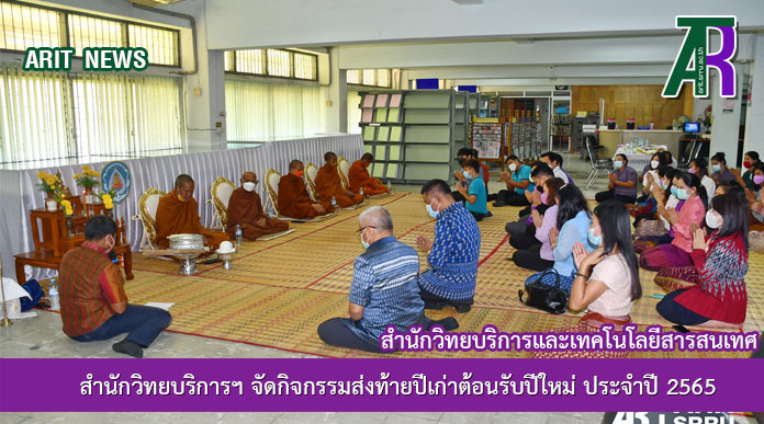 วันที่ 30 ธันวาคม 2564 สำนักวิทยบริการและเทคโนโลยีสารสนเทศ จัดกิจกรรมส่งท้ายปีเก่าต้อนรับปีใหม่ ประจำปี 2565 โดยมี รองศาสตราจารย์ ดร.พงษ์ชาญ ณ ลำปาง รองอธิการดีฝ่ายวางแผน วิจัยและวิเทศสัมพันธ์ เป็นประธานในพิธี ในการนี้ ผู้บริหารและบุคลากรสำนักวิทยบริการฯ ได้เข้าร่วมถวายภัตตาหารเพลแด่พระภิกษุสงฆ์ และกิจกรรมจับสลากแลกของขวัญ