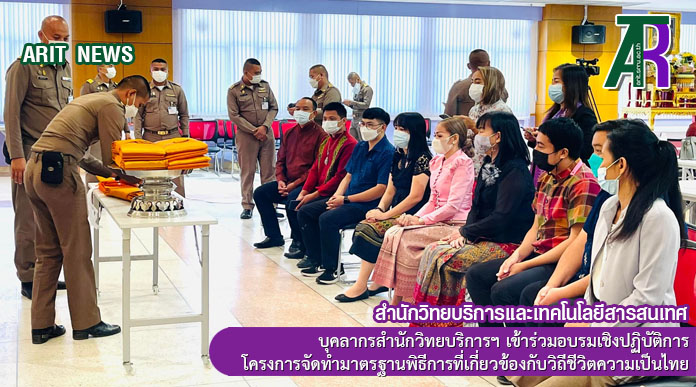 วันที่ 4 – 5 มีนาคม 2565 บุคลากรสำนักวิทยบริการและเทคโนโลยีสารสนเทศ เข้าร่วมอบรมเชิงปฏิบัติการโครงการจัดทำมาตรฐานพิธีการที่เกี่ยวข้องกับวิถีชีวิตความเป็นไทย จัดโดย สำนักศิลปะและวัฒนธรรม มหาวิทยาลัยราชภัฏสุรินทร์ ณ ห้องประชุมบันทายศรี ชั้น 3 อาคาร 44 คณะวิทยาการจัดการ โดยมีกลุ่มพิธีการศพที่ได้รับพระราชทาน สำนักงานวัฒนธรรมจังหวัดสุรินทร์ เป็นวิทยากรให้ความรู้เกี่ยวกับพิธีการศาสนพิธี การจัดเตรียมอุปกรณ์เกี่ยวกับงานศาสนพิธี ซึ่งมีการสาธิตการปฎิบัติงานเกี่ยวกับงานพระราชพิธีเฉลิมพระชนมพรรษา และสาธิตการปฎิบัติงานเกี่ยวกับงานวันพระราชสมภพของพระบาทสมเด็จพระบรมชนกาธิเบศมหาภูมิพลอดุลยเดชมหาราช บรมนาถบพิตร /ขอบคุณภาพ จากสำนักศิลปะและวัฒนธรรม