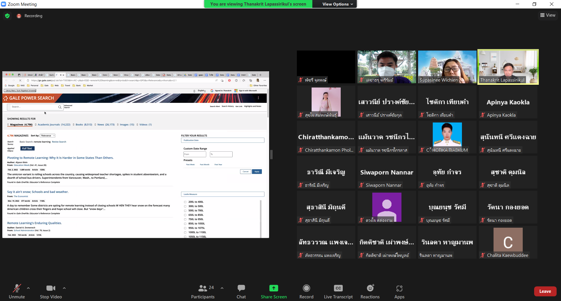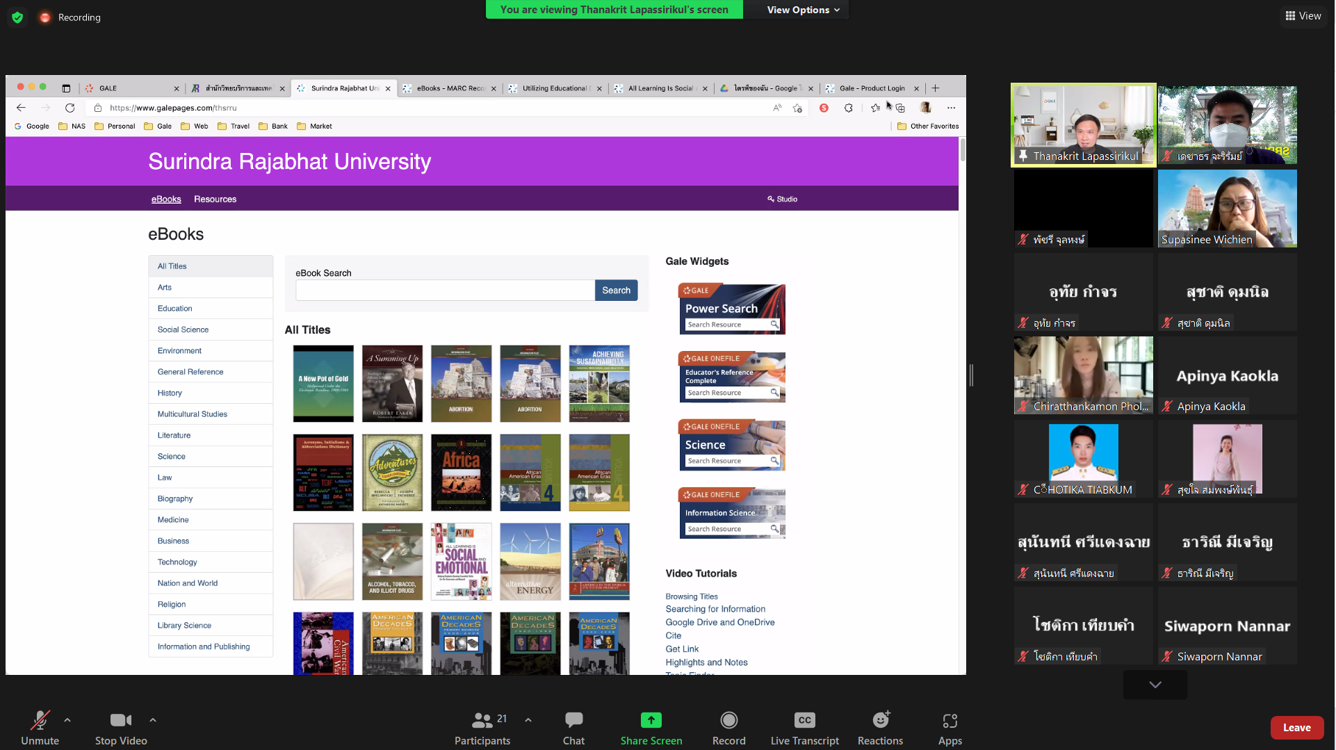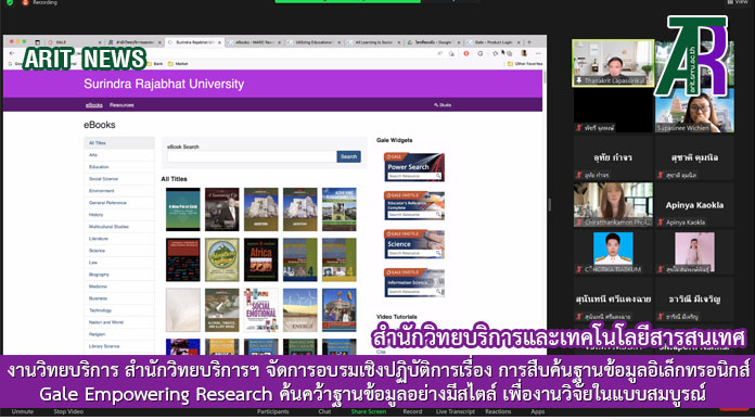 วันที่ 23 มีนาคม 2565 เวลา 13.30 – 16.30 น. งานวิทยบริการ สำนักวิทยบริการและเทคโนโลยีสารสนเทศ จัดการอบรมเชิงปฏิบัติการ เรื่อง การสืบค้นฐานข้อมูลอิเล็กทรอนิกส์ : Gale Empowering Research ค้นคว้าฐานข้อมูลอย่างมีสไตล์ เพื่องานวิจัยในแบบสมบูรณ์ โดยมี อาจารย์สุภาสินี วิเชียร รองผู้อำนวยการสำนักวิทยบริการฯ ฝ่ายวิทยบริการ เป็นประธานในการเปิดการอบรม ในการนี้ได้รับเกียรติจากคุณธนกฤต ลภัสศิริกุล ตำแหน่ง Senior Sales Executive สำนักพิมพ์ Gale เป็นวิทยากรให้ความรู้ ซึ่งการอบรมในครั้งนี้ได้รับความสนใจจากคณาจารย์ บุคลากร และนักศึกษา เป็นอย่างมาก