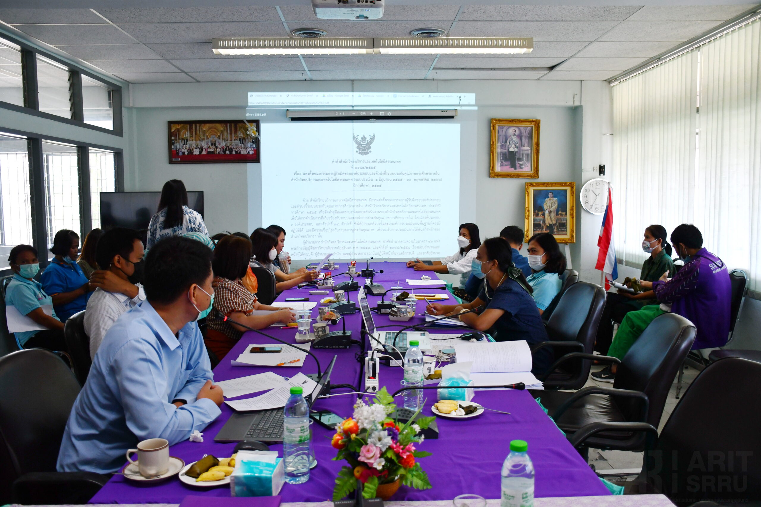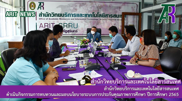 วันที่ 19 สิงหาคม 2565 สำนักวิทยบริการและเทคโนโลยีสารสนเทศ ดำเนินกิจกรรมการทบทวนและมอบนโยบายระบบการประกันคุณภาพการศึกษา ปีการศึกษา 2565 ณ ห้องประชุม ชั้น 4 อาคารสำนักวิทยบริการฯ โดยมี ผู้ช่วยศาตราจารย์สังวาลย์ ตุกพิมาย ผู้อำนวยการสำนักวิทยบริการฯ เป็นประธานในการเปิดกิจกรรม และมอบนโยบายการดำเนินงานระบบการประกันคุณภาพการศึกษาภายใน ปีการศึกษา 2565 ซึ่งมีรองผู้อำนวยการสำนักวิทยบริการฯ และบุคลากรสำนักวิทยบริการฯ เข้าร่วมกิจกรรมในครั้งนี้
