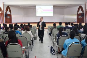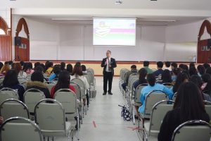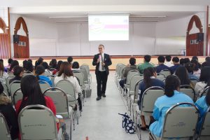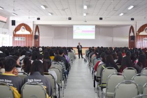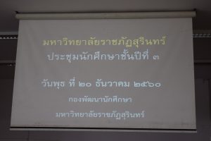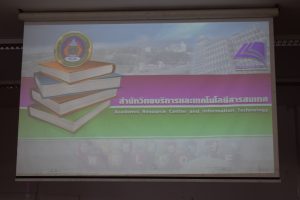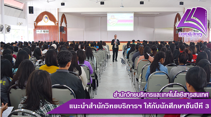 วันที่ 20 ธันวาคม 2560 อาจารย์สมเกียรติ เพ็ชรมาก รองผู้อำนวยการสำนักวิทยบริการและเทคโนโลยีสารสนเทศ ฝ่ายคอมพิวเตอร์และเทคโนโลยี และนายเดชาธร จะริรัมย์ ตำแหน่งบรรณารักษ์ ได้แนะนำสำนักวิทยบริการฯ ให้กับนักศึกษาชั้นปีที่ 3 ทุกสาขาวิชา ณ หอประชุมใหญ่ มหาวิทยาลัยราชภัฏสุรินทร์