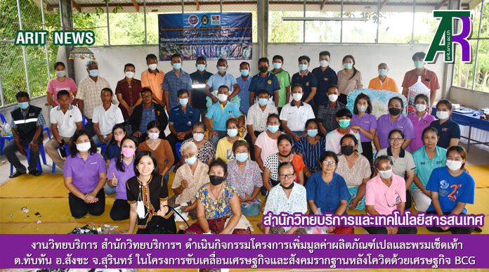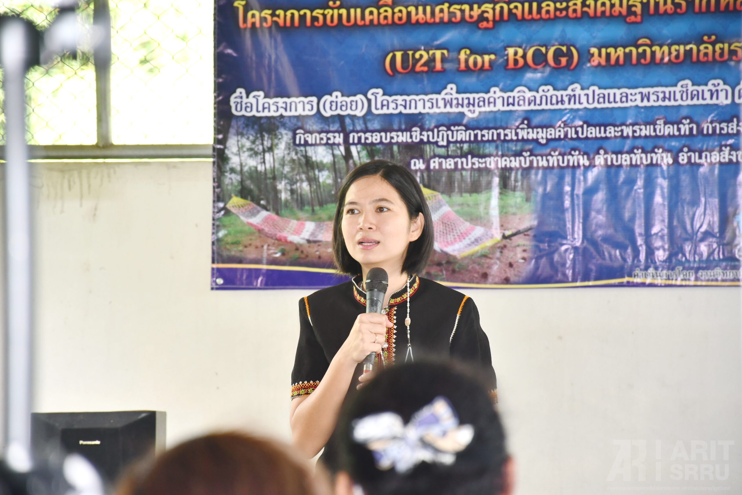 วันที่ 29 – 30 สิงหาคม 2565 งานวิทยบริการ สำนักวิทยบริการและเทคโนโลยีสารสนเทศ นำโดย อาจารย์สุภาสินี วิเชียร รองผู้อำนวยการสำนักวิทยบริการฯ ฝ่ายวิทยบริการ บุคลากรงานวิทยบริการ และผู้ปฏิบัติงาน U2T ได้ดำเนินกิจกรรมโครงการเพิ่มมูลค่าผลิตภัณฑ์เปลและพรมเช็ดเท้า ตำบลทับทัน อำเภอสังขะ จังหวัดสุรินทร์ ในโครงการขับเคลื่อนเศรษฐกิจและสังคมรากฐานหลังโควิดด้วยเศรษฐกิจ BCG (U2T for BCG) ณ ศาลาหมู่บ้านทับทัน ตำบลทับทัน อำเภอสังขะ จังหวัดสุรินทร์ ซึ่งมี ผู้ช่วยศาสตราจารย์ศิรินทิพย์ พิศวง อาจารย์ประจำสาขาวิชาการตลาดสมัยใหม่ คณะวิทยาการจัดการ เป็นวิทยากรให้ความรู้ เรื่อง การส่งเสริมการขาย และการตลาดออนไลน์ให้แก่กลุ่มเป้าหมาย ซึ่งในกิจกรรมนี้ได้มีชาวบ้านในตำบลทับทันที่สนใจเข้าร่วมอบรม จำนวน 30 คน