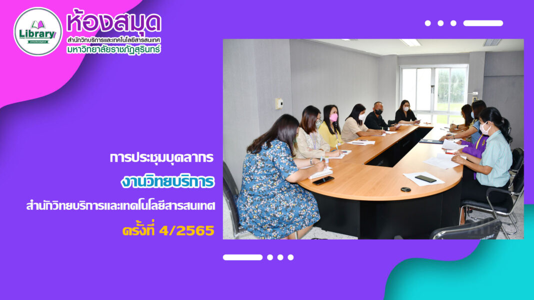 วันที่ 26 กันยายน 2565 เวลา 09.00 น. งานวิทยบริการ สำนักวิทยบริการและเทคโนโลยีสารสนเทศ ดำเนินการประชุมบุคลากรงานวิทยบริการ ครั้งที่ 4/2565 ณ ห้องประชุม ชั้น 1 อาคารสำนักวิทยบริการฯ โดยมี อาจารย์สุภาสินี วิเชียร รองผู้อำนวยการสำนักวิทยบริการฯ ฝ่ายวิทยบริการ เป็นประธานการประชุม ซึ่งมีบุคลากรงานวิทยบริการ เข้าร่วมประชุมพิจารณาเรื่องงบประมาณประจำปี 2566 และวาระอื่นๆ