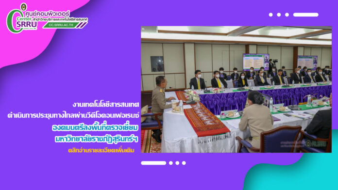 วันที่ 16 พฤศจิกายน 2565 เวลา 08.30 น. งานเทคโนโลยีสารสนเทศ สำนักวิทยบริการและเทคโนโลยีสารสนเทศ ดำเนินการดำเนินการประชุมทางไกลผ่านวีดีโอคอนเฟอเรนซ์ องคมนตรีลงพื้นที่ตรวจเยี่ยมมหาวิทยาลัยราชภัฏสุรินทร์ เพื่อติดตามการดำเนินงานภายใต้ 2 ยุทธศาสตร์หลักของมหาวิทยาลัยราชภัฏเพื่อการพัฒนาท้องถิ่น และการดำเนินงานโครงการพัฒนา Soft skill ด้วยกระบวนการวิศวกรสังคม ณ ห้องประชุมล้านช้าง อาคารฝึกประสบการณ์วิชาชีพล้านช้าง มหาวิทยาลัยราชภัฏสุรินทร์