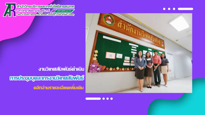 วันที่ 25 พฤศจิกายน 2565 เวลา 13.30 น. งานวิเทศสัมพันธ์ สำนักวิทยบริการและเทคโนโลยีสารสนเทศ ดำเนินการประชุมบุคลากรงานวิเทศสัมพันธ์ ครั้งที่ 1/2565 โดยมี อาจารย์สุภาสินี วิเชียร รองผู้อำนวยการสำนักวิทยบริการฯ ฝ่ายวิทยบริการ รักษาราชการแทนผู้อำนวยการสำนักวิทยบริการฯ เป็นประธานการประชุม ซึ่งมี อาจารย์ศิรประภา รัตนรวมการ หัวหน้างานวิเทศสัมพันธ์ และบุคลากรเข้าร่วมประชุม