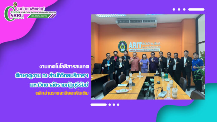 วันที่ 9 ธันวาคม 2565 งานเทคโนโลยีสารสนเทศ นำโดย ผศ.ดร.อำนวย วัฒนกรสิริ รองอธิการบดี ฝ่ายเทคโนโลยีและการสื่อสารองค์กร และอาจารย์สุวัฒน์ กล้วยทอง รองผู้อำนวยการสำนักวิทยบริการฯ ฝ่ายเทคโนโลยีสารสนเทศ พร้อมด้วยบุคลากรงานเทคโนโลยีสารสนเทศ เข้าศึกษาดูงานเกี่ยวกับ งานเทคโนโลยีสารสนเทศ ณ สำนักวิทยบริการและเทคโนโลยีสารสนเทศ มหาวิทยาลัยราชภัฏบุรีรัมย์ ในการศึกษาดูงานครั้งนี้ ได้รับเกียรติจาก รองศาสตราจารย์ ดร.ศิราณี จุโฑปะมา รองอธิการบดีฝ่ายบริหารงานบุคคลและเทคโนโลยีสารสนเทศ พร้อมคณะผู้บริหารสำนักวิทยบริการฯ ให้การต้อนรับ