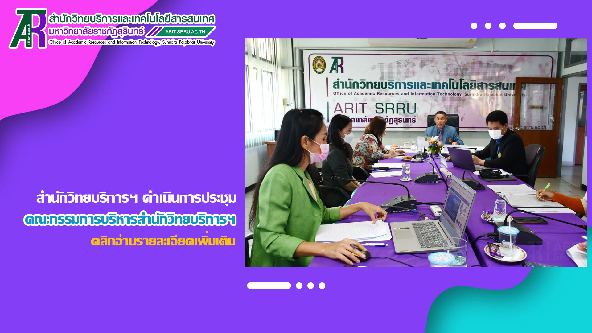 วันที่ 22 ธันวาคม 2565 เวลา 09.00 น. สำนักวิทยบริการและเทคโนโลยีสารสนเทศ ดำเนินการประชุมคณะกรรมการบริหารสำนักวิทยบริการฯ ครั้งที่ 6/2565 ณ ห้องประชุม ชั้น 4 อาคารสำนักวิทยบริการฯ โดยมี ผู้ช่วยศาสตราจารย์สังวาลย์ ตุกพิมาย ผู้อำนวยการสำนักวิทยบริการฯ เป็นประธานการประชุม โดยมี ผู้บริหาร และบุคลากรสำนักวิทยบริการฯ เข้าร่วมประชุม เพื่อพิจารณาในระเบียบวาระการประชุม