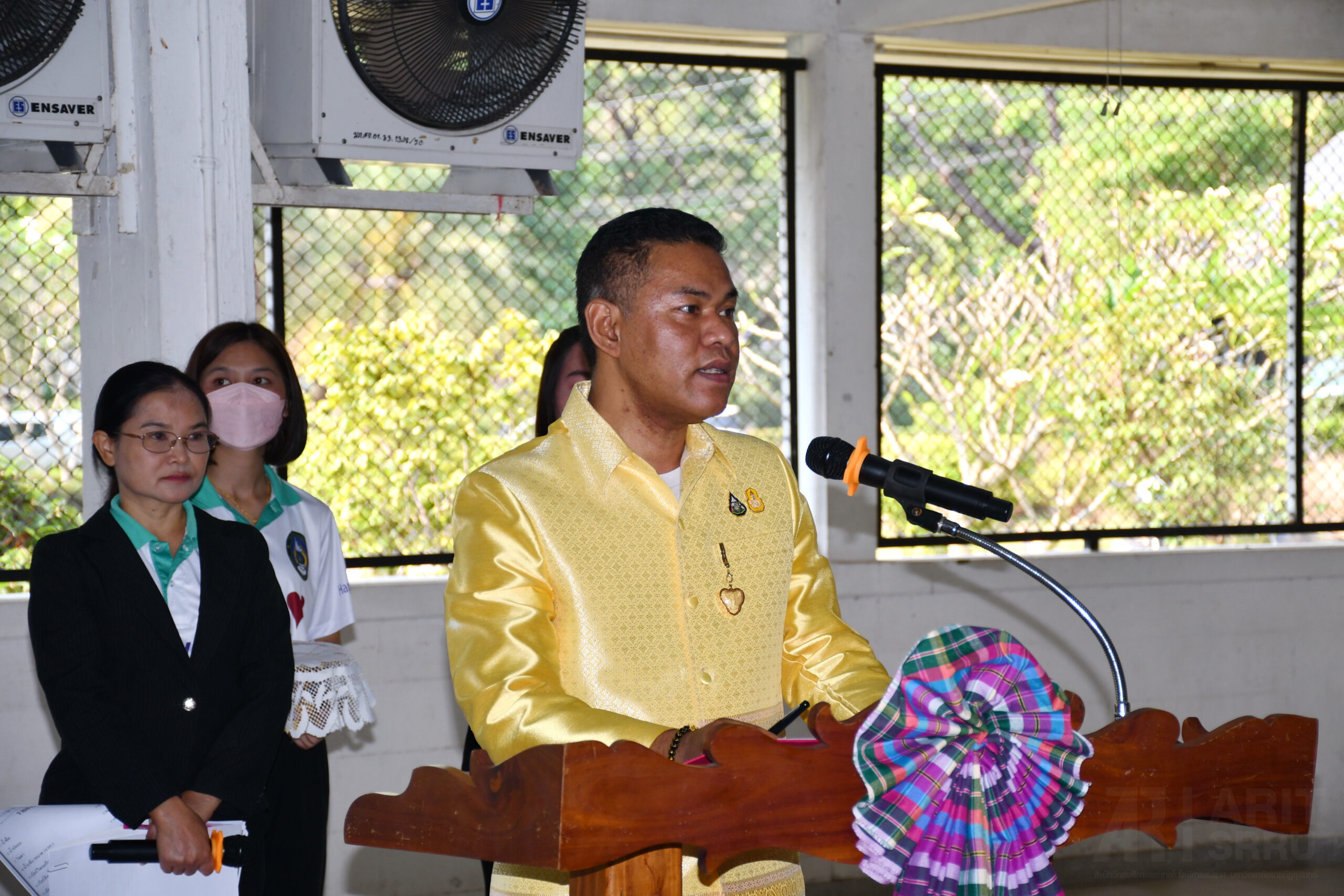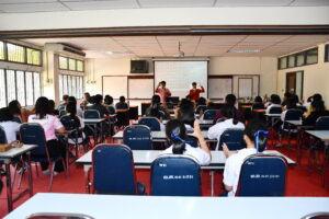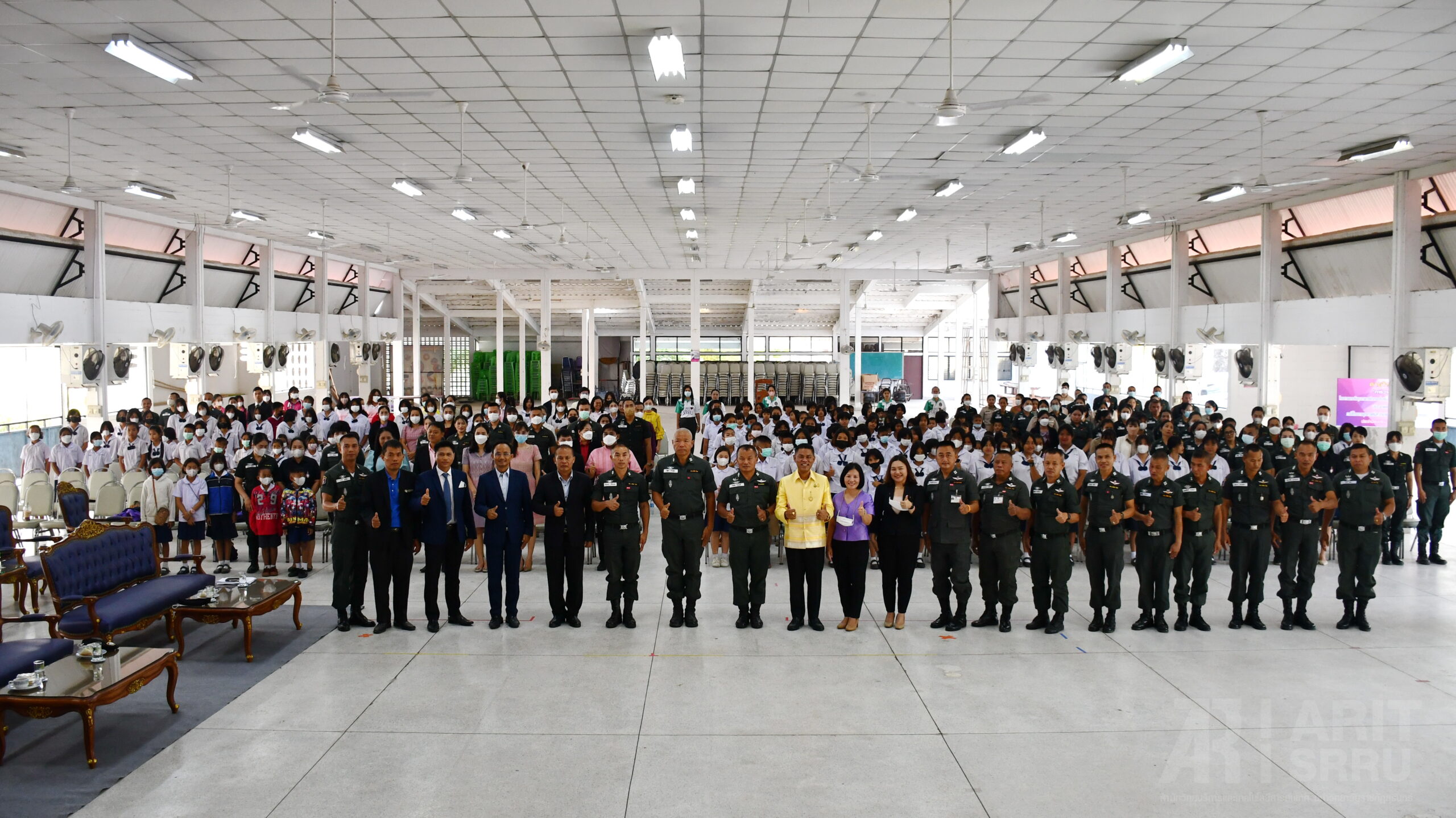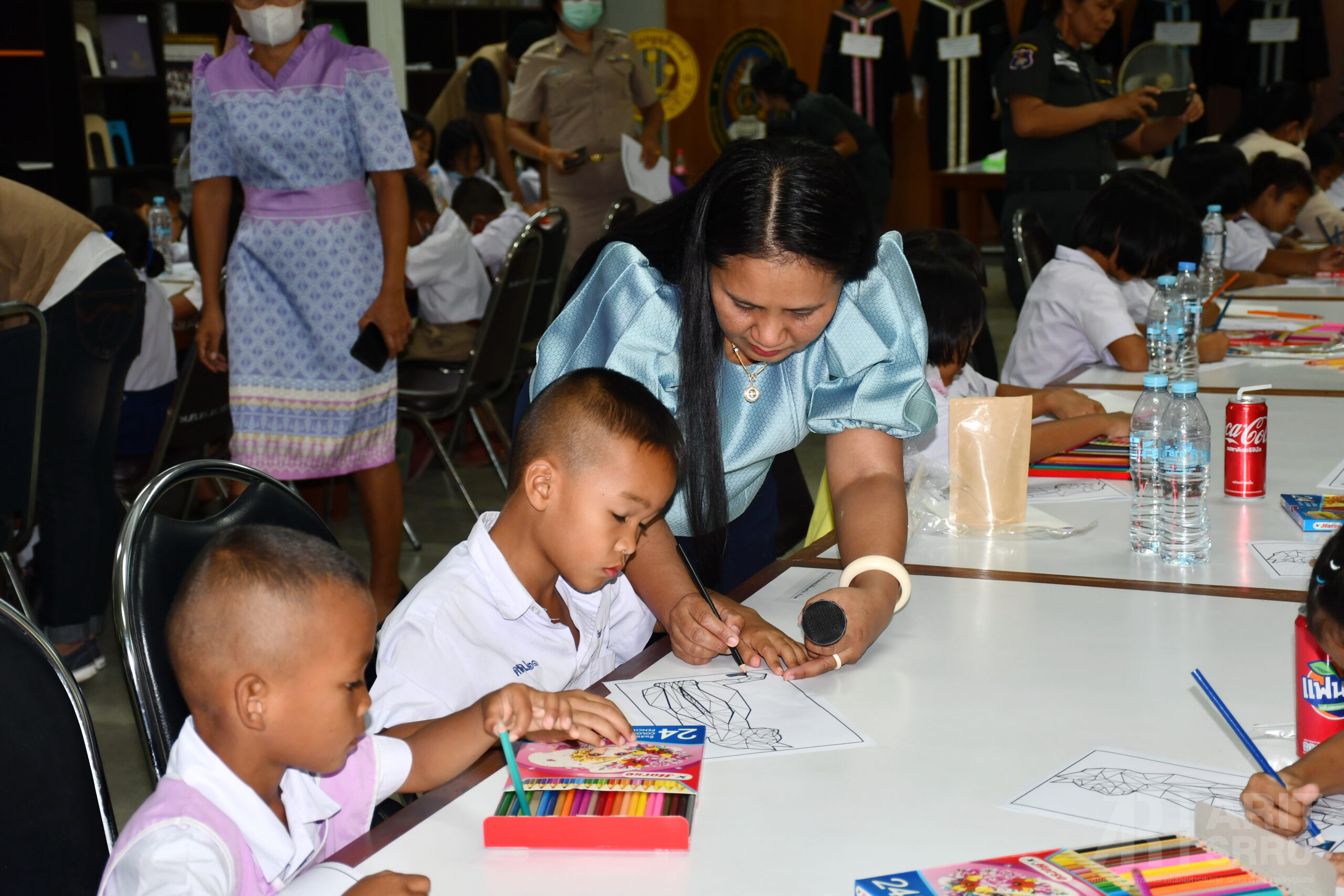 วันที่ 18 มีนาคม 2566 เวลา 09.00 น. สำนักวิทยบริการและเทคโนโลยีสารสนเทศ มหาวิทยาลัยราชภัฏสุรินทร์ ดำเนินโครงการยกระดับคุณภาพการศึกษาและส่งเสริมการเรียนรู้ด้วยตนเองของนักเรียนในโรงเรียนบริเวณชายแดนไทย – กัมพูชา ภายใต้โครงการยุทธศาสตร์ มหาวิทยาลัยราชภัฏสุรินทร์เพื่อการพัฒนาท้องถิ่น ประจำปีงบประมาณ พ.ศ. 2566 ณ หอประชุมใหญ่ มหาวิทยาลัยราชภัฏสุรินทร์ โดยมี ผู้ช่วยศาสตราจารย์ ดร.ฉลอง สุขทอง อธิการบดีมหาวิทยาลัยราชภัฏสุรินทร์ เป็นประธานในการเปิดโครงการ ทั้งนี้ ผู้ช่วยศาสตราจารย์สังวาลย์ ตุกพิมาย ผู้อำนวยการสำนักวิทยบริการฯ ได้กล่าวรายงานความเป็นมา และวัตถุประสงค์การดำเนินของโครงการฯ ซึ่งการดำเนินโครงการฯ ในครั้งนี้ เป็นการดำเนินโครงการในกิจกรรมที่ 1 ค่ายวิชาการ จัดระหว่างวันที่ 18 – 19 มีนาคม 2566 โดยแบ่งเป็น 5 กิจกรรม ดังนี้ 1. การอบรมเชิงปฏิบัติการวาดภาพ 2. การอบรมเชิงปฏิบัติการคัดลายมือ 3. การอบรมเชิงปฏิบัติการเขียนเรียงความ 4. การอบรมเชิงปฏิบัติการ่านเอาเรื่อง 5. การอบรมเชิงปฏิบัติการกล่าวสุนทรพจน์ ในกิจกรรมดังกล่าวได้รับความสนใจจากนักเรียน และครูในกลุ่มเป้าหมายเข้าร่วมอบรมเป็นจำนวนมาก