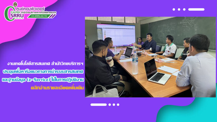 วันที่ 22 มีนาคม 2566 เวลา 09.30 น. อาจารย์สุวัฒน์ กล้วยทอง รองผู้อำนวยการสำนักวิทยบริการฯ ฝ่ายเทคโนโลยีสารสนเทศ เป็นประธานการประชุมเพื่อหารือแนวทางการนำระบบสารสนเทศและฐานข้อมูล (e-Service) มาใช้สนับสนุนการปฏิบัติงาน ด้านการบริการจองห้องประชุมและยานพาหนะ ร่วมกับหัวหน้าหมวดยานพาหนะ และบุคลากรงานสวัสดิการ ณ ห้องประชุมงานเทคโนโลยีสารสนเทศ ชั้น 3 อาคาร 28
