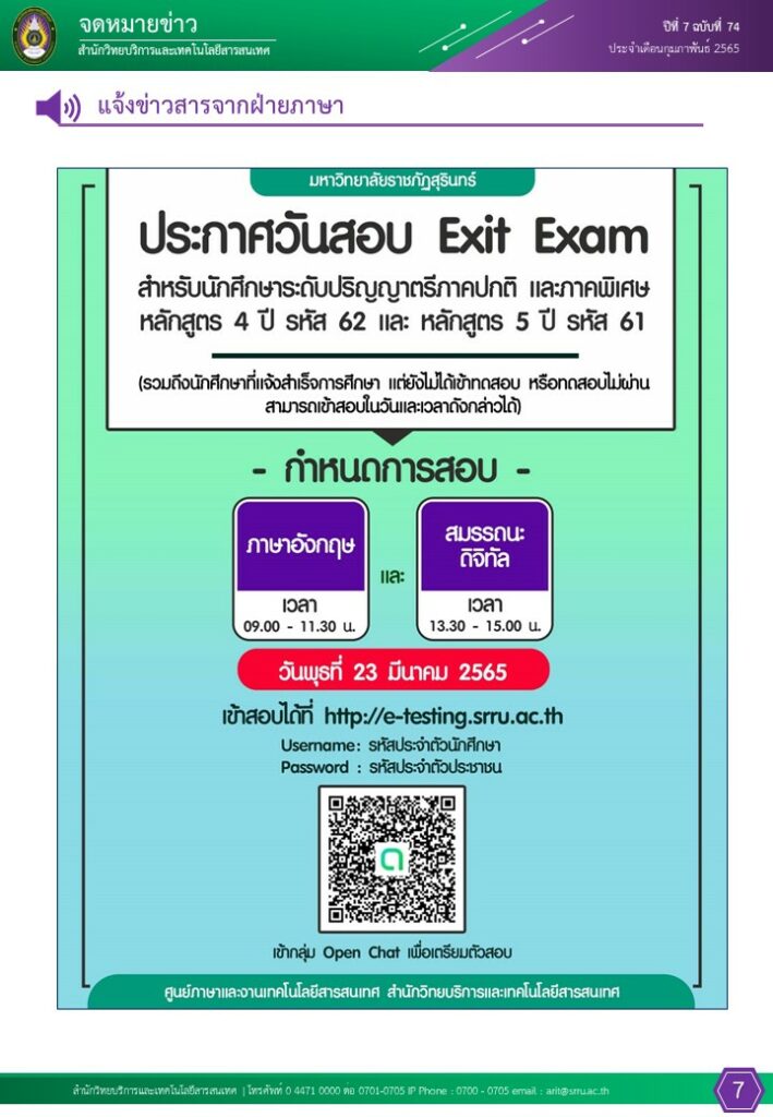 จดหมายข่าวเดือนกุมภาพันธ์ 65