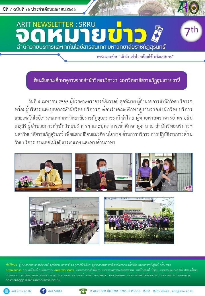 จดหมายข่าวเดือนเมษายน 65
