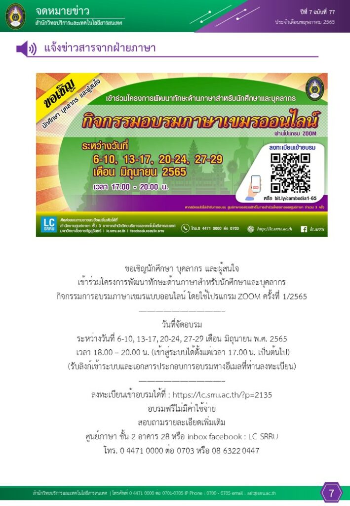 จดหมายข่าวเดือนพฤษภาคม 65