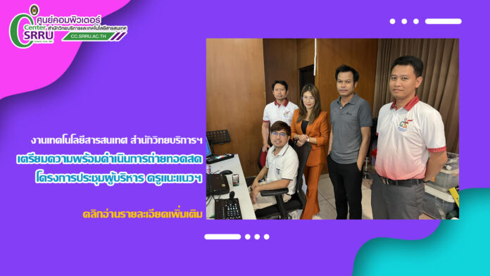 วันที่ 23 พฤศจิกายน 2566 งานเทคโนโลยีสารสนเทศ สำนักวิทยบริการฯ เตรียมความพร้อมระบบถ่ายทอดสด และดำเนินการถ่ายทอดสดในวันที่ 24 พฤศจิกายน 2566 ในโครงการประชุมผู้บริหาร ครูแนะแนว และครูประจำชั้นนักเรียน มัธยมศึกษาปีที่ 6 ประจำปีการศึกษา 2567 ณ ห้องประชุมบันทายศรี ชั้น 3 คณะวิทยาการจัดการ จัดโดยสำนักส่งเสริมวิชาการและงานทะเบียน