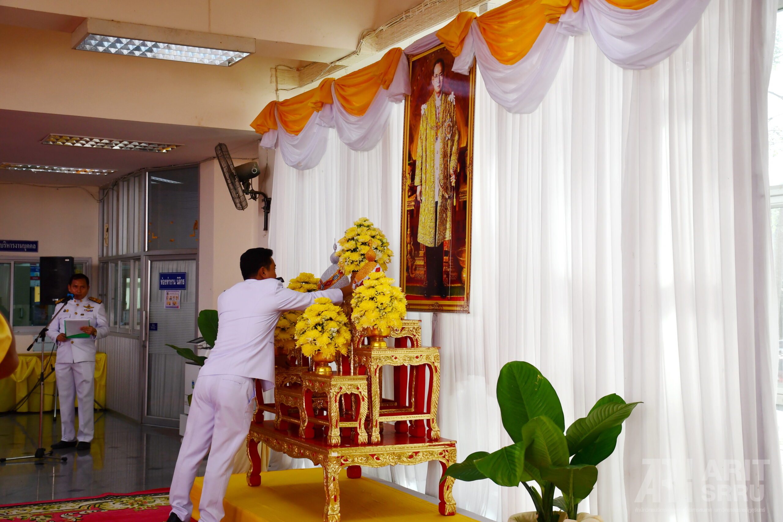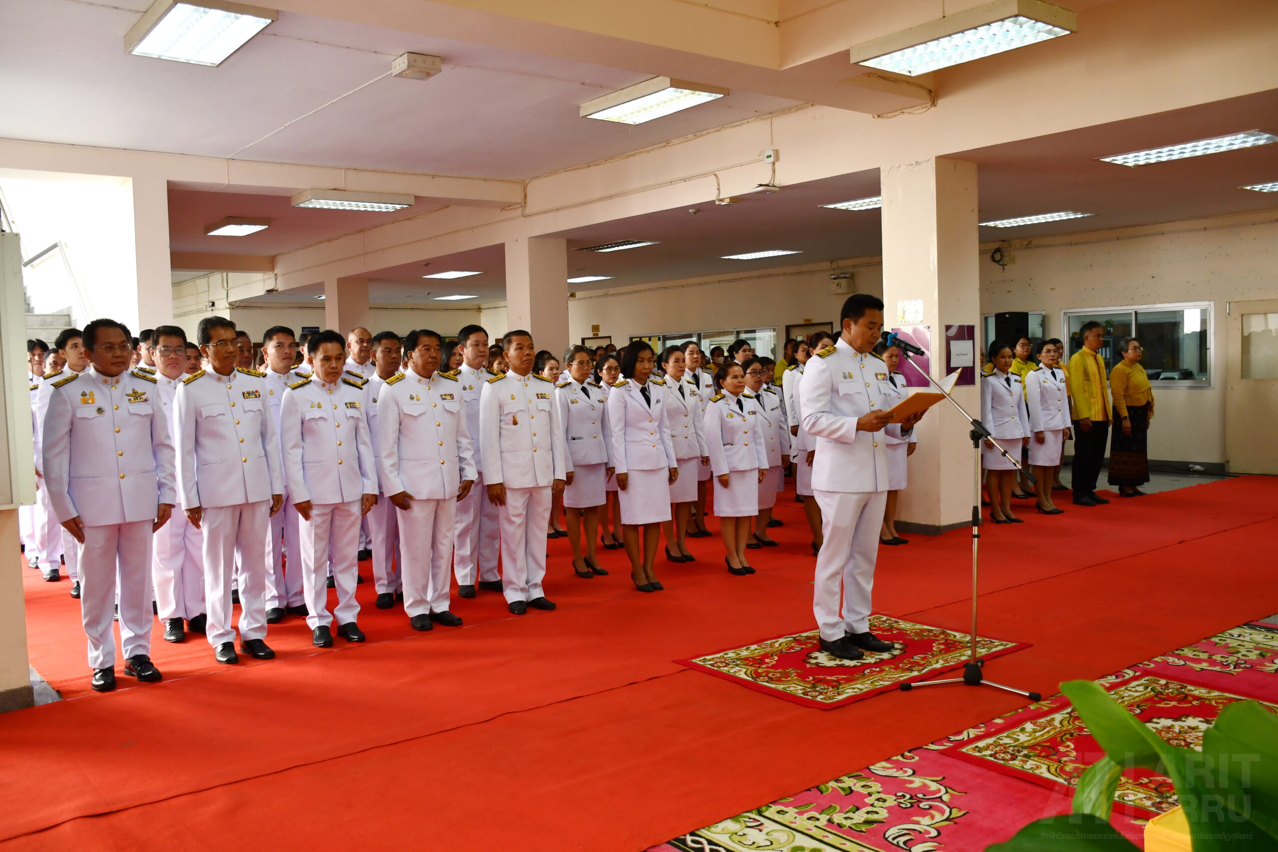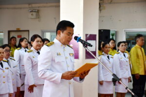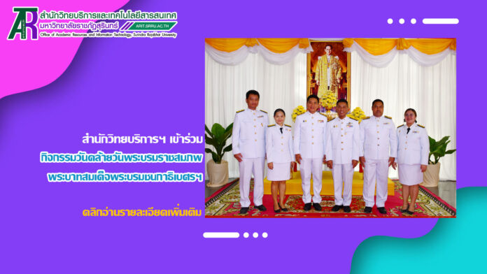 วันที่ 4 ธันวาคม 2566 เวลา 08.30 น. สำนักวิทยบริการและเทคโนโลยีสารสนเทศ นำโดย ผู้ช่วยศาสตราจารย์สังวาลย์ ตุกพิมาย ผู้อำนวยการสำนักวิทยบริการฯ นำผู้บริหาร และบุคลากร เข้าร่วมกิจกรรมวันคล้ายวันพระบรมราชสมภพ พระบาทสมเด็จพระบรมชนกาธิเบศร มหาภูมิพลอดุลยเดชมหาราช บรมนาถบพิตร วันชาติ และวันพ่อแห่งชาติ 5 ธันวาคม 2566 ณ บริเวณชั้น 1 อาคาร 31 (หน้าห้องงานประชาสัมพันธ์) โดยมี ผู้ช่วยศาสตราจารย์ ดร.ฉลอง สุขทอง อธิการบดีมหาวิทยาลัยราชภัฏสุรินทร์ เป็นประธานในพิธี