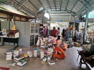 วันที่ 9 – 10 ธันวาคม 2566 อาจารย์สุภาสินี วิเชียร รองผู้อำนวยการสำนักวิทยบริการและเทคโนโลยีสารสนเทศ ฝ่ายวิทยบริการ นำบุคลากรงานวิทยบริการ (ห้องสมุด) ดำเนินโครงการบริการวิชาการ สำนักวิทยบริการฯ เพื่อพัฒนาท้องถิ่นตามพระบรมราโชบาย : จัดแหล่งเรียนรู้ ณ วัดศาลาลอย พระอารามหลวง อำเภอเมือง จังหวัดสุรินทร์ เพื่อถวายหลวงพ่อ พระพรหมวชิรโมลี (ทองอยู่ ญาณวิสุทฺโธ)