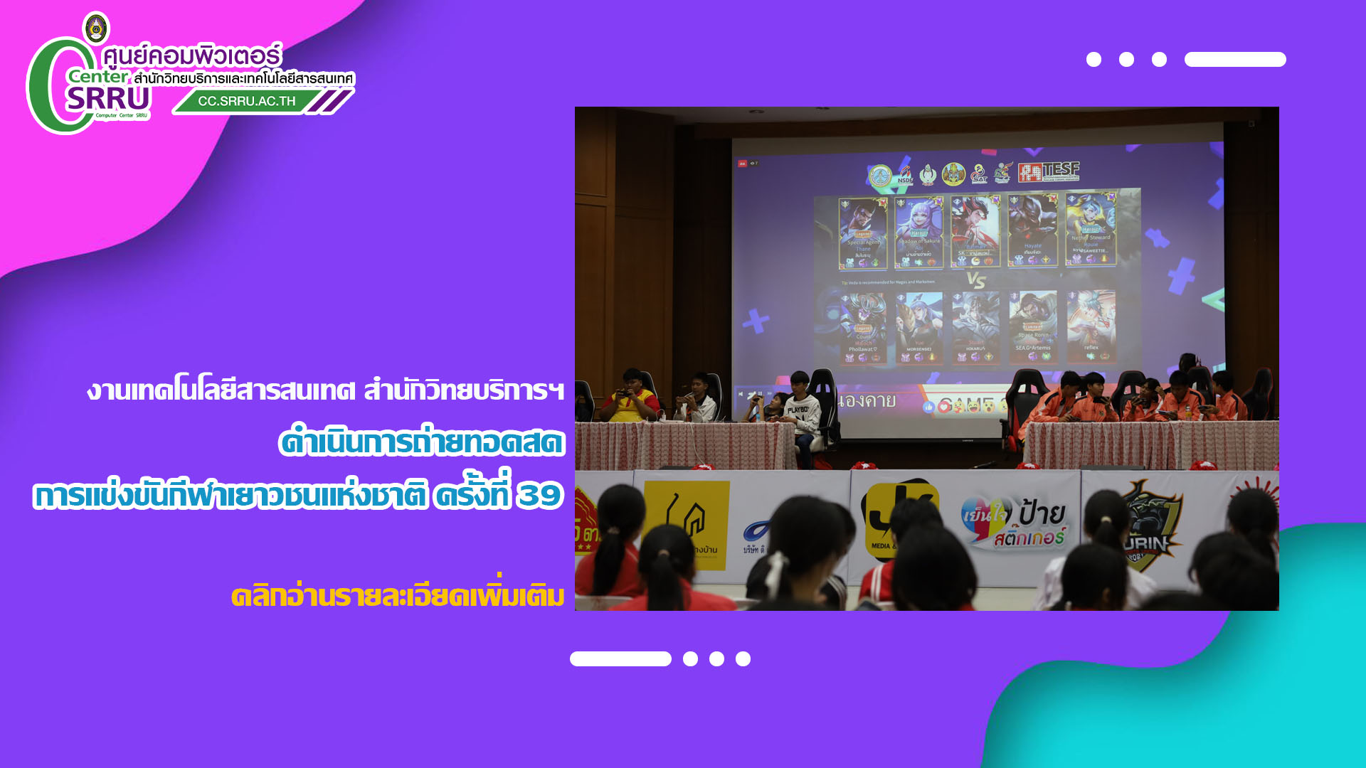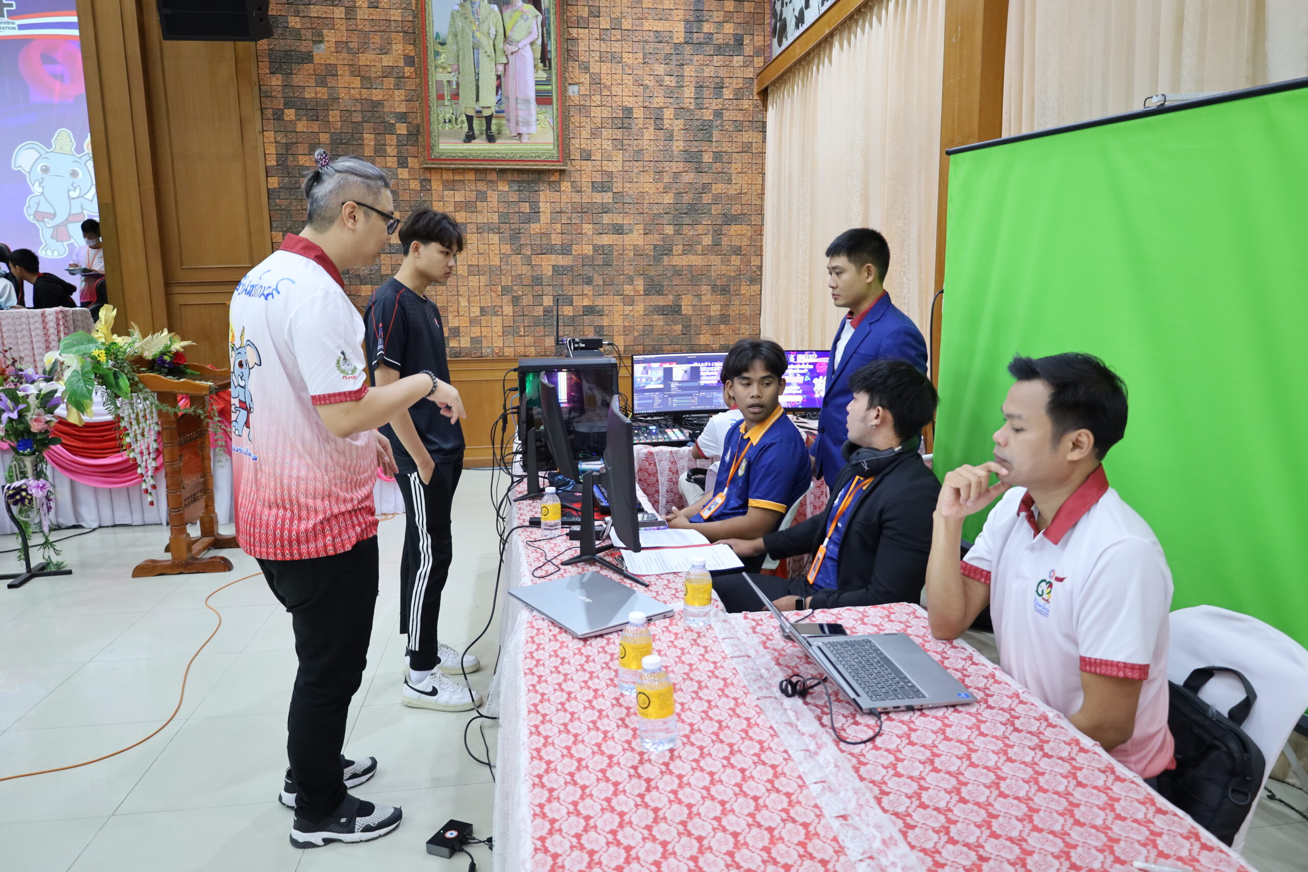 วันที่ 12 – 13 ธันวาคม 2566 งานเทคโนโลยีสารสนเทศ สำนักวิทยบริการและเทคโนโลยีสารสนเทศ ดำเนินการถ่ายทอดสดการแข่งขันกีฬาเยาวชนแห่งชาติ ครั้งที่ 39 รอบคัดเลือกตัวแทนภาค 3 “สุรินทร์เกมส์” ประเภทกีฬา อีสปอร์ต ณ หอประชุมรวมฤทัยธำรง โรงเรียนสิรินธร จังหวัดสุรินทร์
