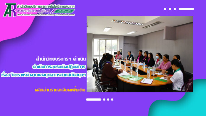 วันที่ 23 มกราคม 2567 สำนักวิทยบริการและเทคโนโลยีสารสนเทศ ดำเนินการอบรมเชิงปฏิบัติการ เรื่อง วิเคราะห์ค่างานของบุคลากรสายสนับสนุนเพื่อเตรียมพร้อมรับการประเมินเข้าสู่ตำแหน่งที่สูงขึ้น โดย ผู้ช่วยศาสตราจารย์สังวาลย์ ตุกพิมาย ผู้อำนวยการสำนักวิทยบริการฯ เป็นประธานการเปิดการอบรม ในการนี้ ได้รับเกียรติจาก นางดลธร พลรักษ์ นางสาวเบญญาภาภัค ไพศาลเกียรติ์ปทุม นางสาวน้ำฝน เครือแก้ว และนายชัยยันต์ ผมพันธ์ เป็นวิทยากรบรรยายให้ความรู้แก่ผู้เข้าร่วมอบรมในครั้งนี้ ณ ห้อง Group Study Room ชั้น 1 อาคารสำนักวิทยบริการฯ