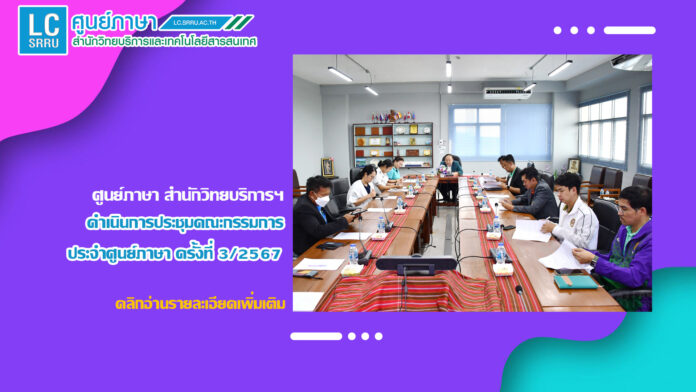 วันที่ 15 พฤษภาคม 2567 เวลา 13.00 น. ศูนย์ภาษา สำนักวิทยบริการและเทคโนโลยีสารสนเทศ ดำเนินการประชุมคณะกรรมการประจำศูนย์ภาษา ครั้งที่ 3/2567 ณ ห้องประชุมวิเทศสัมพันธ์ อาคาร 31 โดยมี ผู้ช่วยศาสตราจารย์ ดร.อำนวย วัฒนกรสิริ รองอธิการบดีฝ่ายเทคโนโลยีและการสื่อสารองค์กร เป็นประธานการประชุม ในการนี้ ได้มีคณะกรรมการประจำศูนย์ภาษา เข้าร่วมประชุม เพื่อพิจารณาประกาศมหาวิทยาลัยราชภัฏสุรินทร์ เรื่อง นโยบายยกระดับมาตรฐานภาษาอังกฤษสำหรับนักศึกษามหาวิทยาลัยราชภัฏสุรินทร์ พ.ศ. 2567 และประกาศมหาวิทยาลัยราชภัฏสุรินทร์ เรื่อง เกณฑ์มาตรฐานความสามารถภาษาอังกฤษของนักศึกษามหาวิทยาลัยราชภัฏสุรินทร์