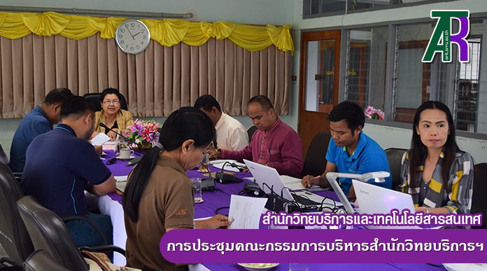 วันที่ 12 มีนาคม 2561 ผู้ช่วยศาสตราจารย์ ดร.สันทนา กูลรัตน์ ผู้อำนวยการสำนักวิทยบริการและเทคโนโลยีสารสนเทศ เป็นประธานในการประชุมคณะกรรมการบริหารสำนักวิทยบริการและเทคโนโลยีสารสนเทศ ครั้งที่ 2/2561 โดยมีรองผู้อำนวยการสำนักวิทยบริการฯและหัวหน้าฝ่ายต่าง ๆ ของสำนักวิทยบริการฯ เข้าร่วมประชุมอย่างพร้อมเพรียงกัน