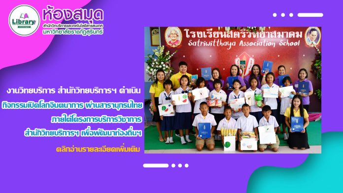 วันที่ 18 พฤศจิกายน 2567 งานวิทยบริการ สำนักวิทยบริการและเทคโนโลยีสารสนเทศ นำโดย อาจารย์สุภาสินี วิเชียร รองผู้อำนวยการสำนักวิทยบริการฯ ฝ่ายวิทยบริการ นำบุคลากรงานวิทยบริการ ดำเนินกิจกรรมเปิดโลกจินตนาการ ผ่านสารานุกรมไทย ภายใต้โครงการบริการวิชาการ สำนักวิทยบริการฯ เพื่อพัฒนาท้องถิ่นตามพระบรมราโชบาย ประจำปีงบประมาณ 2568 โดยมีครู และนักเรียนชั้นประถมศึกษาปีที่ 4 จากโรงเรียนสตรีวิทยาสมาคม ตำบลตาตุม อำเภอสังขะ จังหวัดสุรินทร์ จำนวน 15 คน เข้าร่วมกิจกรรมในครั้งนี้