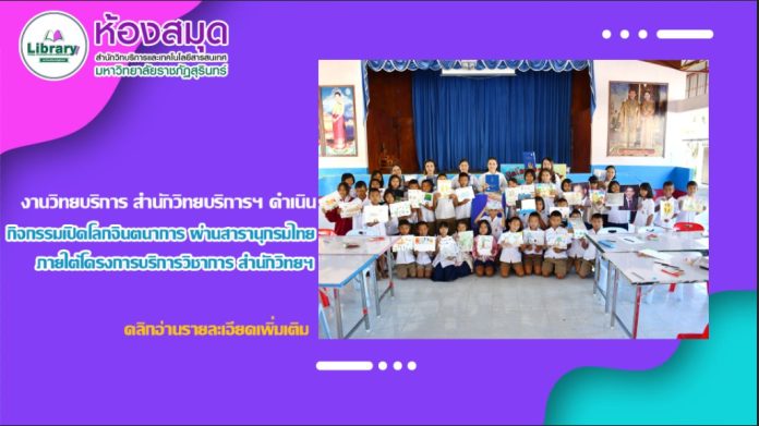 วันที่ 21 พฤศจิกายน 2567 งานวิทยบริการ สำนักวิทยบริการและเทคโนโลยีสารสนเทศ ดำเนินกิจกรรมเปิดโลกจินตนาการ ผ่านสารานุกรมไทย ภายใต้โครงการบริการวิชาการ สำนักวิทยบริการฯ เพื่อพัฒนาท้องถิ่นตามพระบรมราโชบาย ประจำปีงบประมาณ 2568 โดยมีนักเรียนชั้นประถมศึกษาปีที่ 4 จากโรงเรียนบ้านหนองคันนา ตำบลตาเมียง อำเภอพนมดงรัก จังหวัดสุรินทร์ จำนวน 39 คน เข้าร่วมกิจกรรมในครั้งนี้