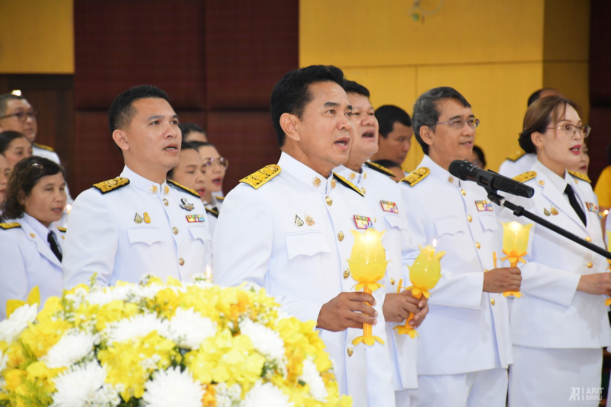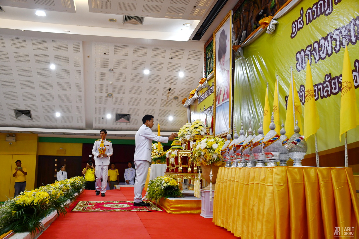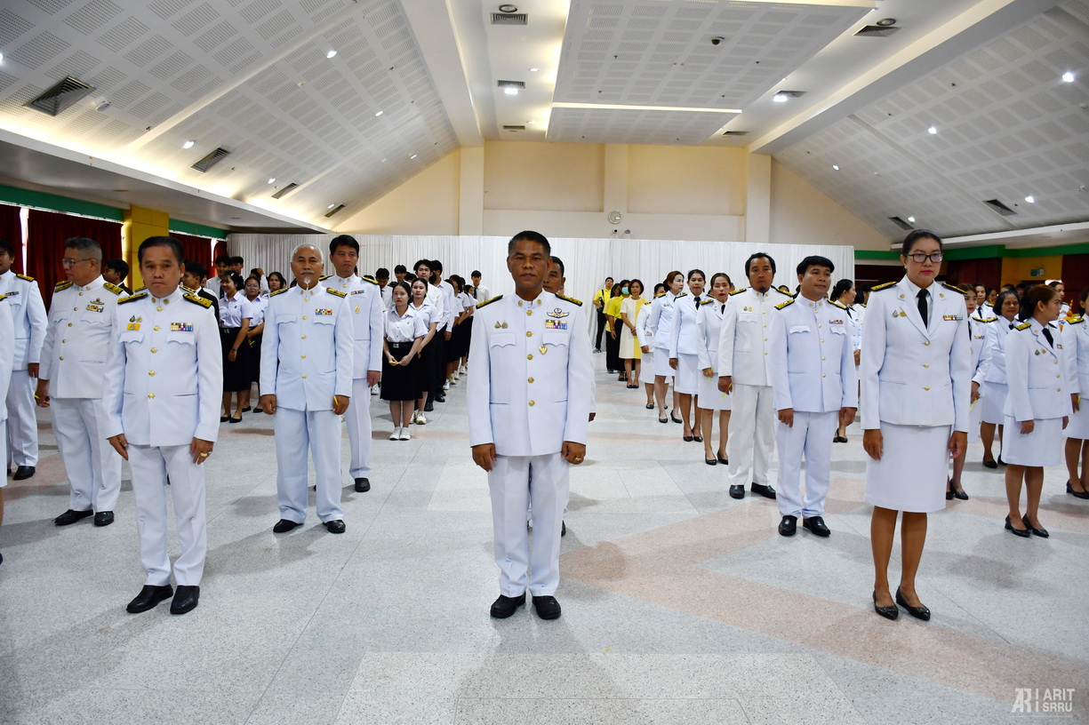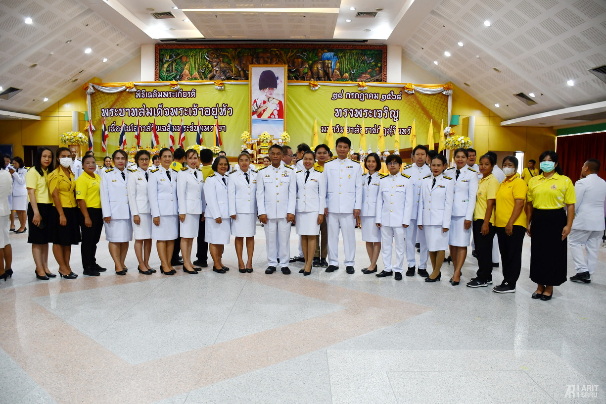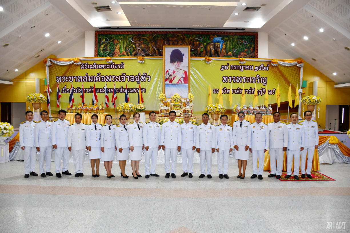 วันที่ 25 กรกฎาคม 2568 เวลา 09.00 น. สำนักวิทยบริการและเทคโนโลยีสารสนเทศ โดย ผู้ช่วยศาสตราจารย์ ดร.สังวาลย์ ตุกพิมาย ผู้อำนวยการสำนักวิทยบริการฯ นำผู้บริหารและบุคลากรเข้าร่วมพิธีเฉลิมพระเกียรติพระบาทสมเด็จพระเจ้าอยู่หัว เนื่องในโอกาสวันเฉลิมพระชนมพรรษา วันที่ 28 กรกฎาคม 2568 ณ ห้องประชุมช้างเผือก คณะครุศาสตร์ อาคาร 41 มหาวิทยาลัยราชภัฏสุรินทร์