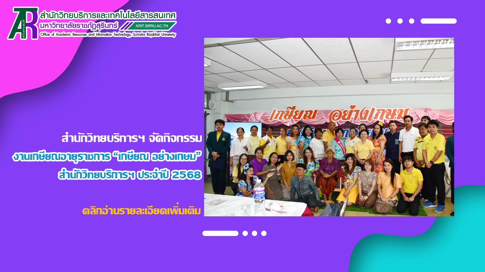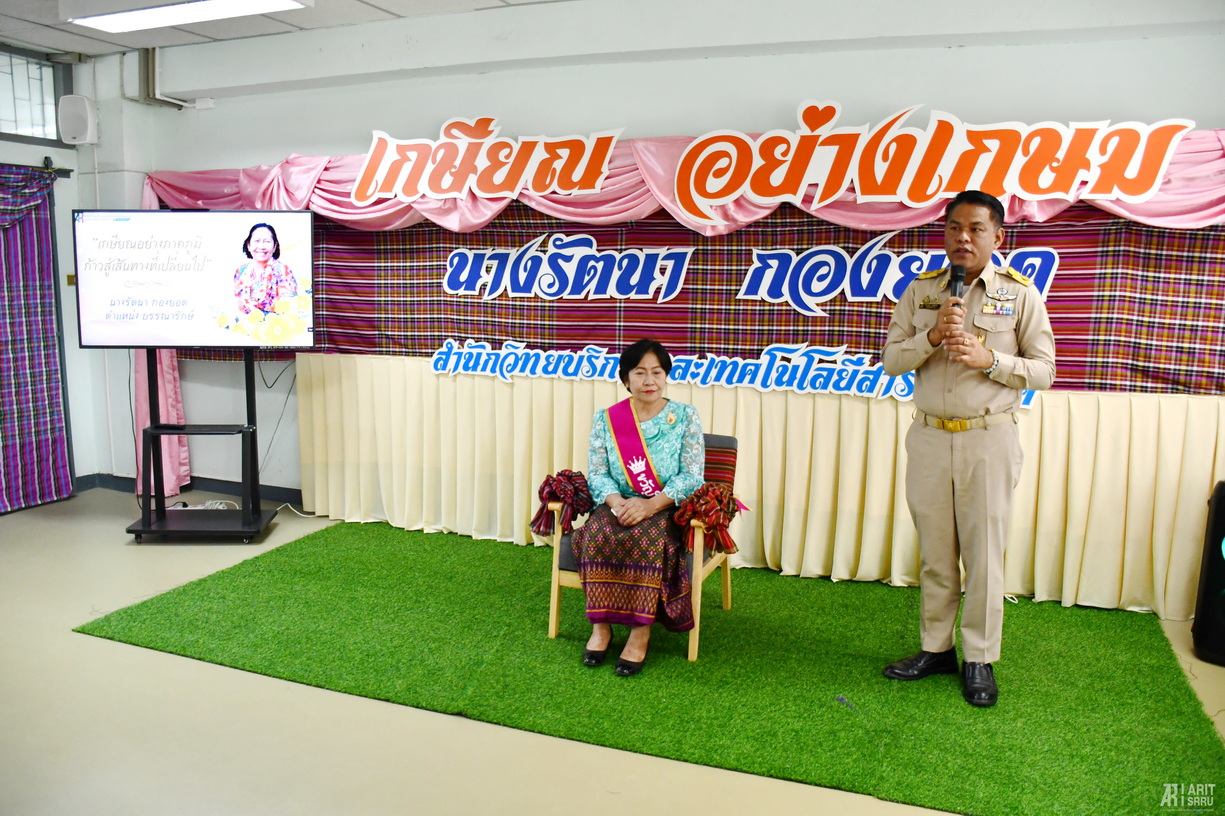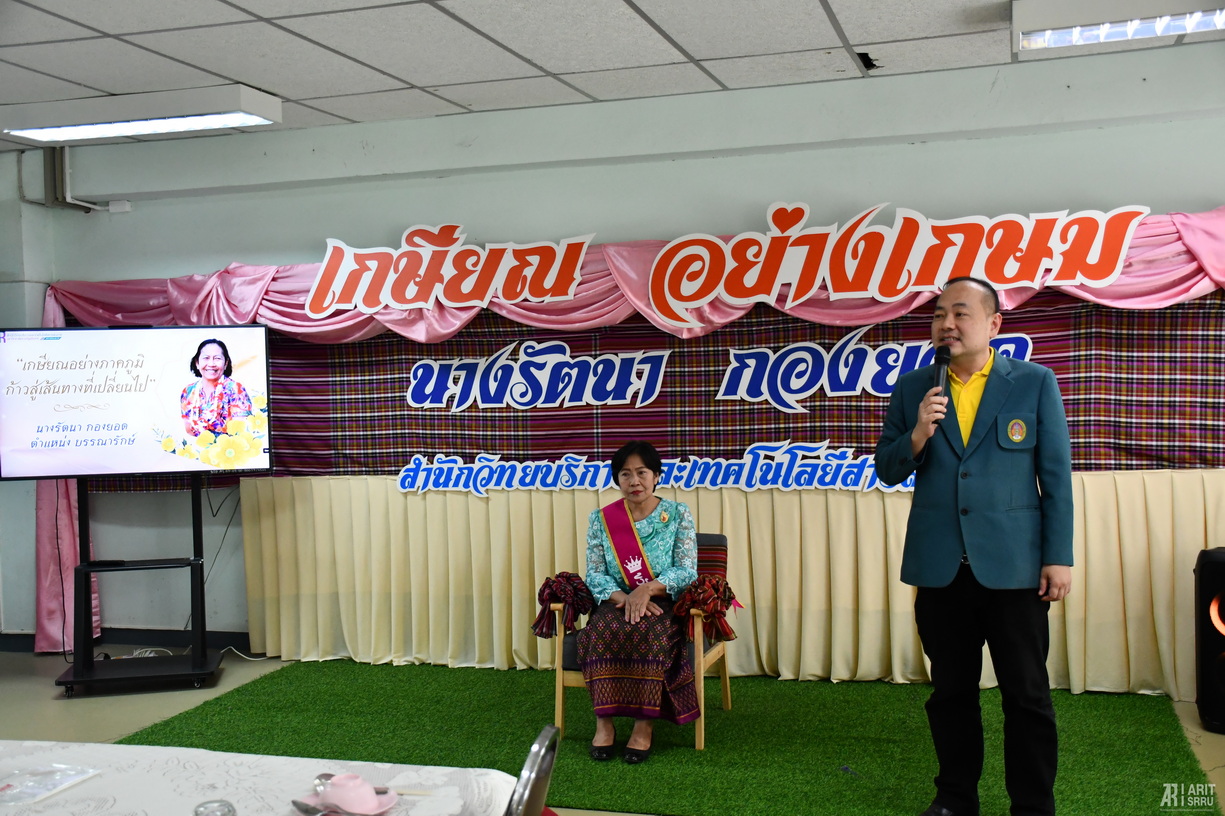 วันที่ 29 กันยายน 2568 เวลา 10.30 น. สำนักวิทยบริการและเทคโนโลยีสารสนเทศ จัดกิจกรรมงานเกษียณอายุราชการ “เกษียณ อย่างเกษม” สำนักวิทยบริการฯ ประจำปี 2568 นางรัตนา กองยอด ตำแหน่งบรรณารักษ์ ผู้เกษียณอายุราชการ ณ ห้องโสตทัศนวัสดุ 2 ชั้น 4 อาคารสำนักวิทยบริการฯ โดยมี รองศาสตราจารย์ ดร.อำนวย วัฒนกรสิริ รองอธิการบดีเทคโนโลยีและการสื่อสารองค์กร เป็นประธานการเปิดกิจกรรม ในการนี้ ผู้ช่วยศาสตราจารย์ ดร.จำนงค์ จันทร์เขียว ผู้ช่วยอธิการบดีด้านศิลปะและวัฒนธรรม ผู้ช่วยศาสตราจารย์ ดร.สังวาลย์ ตุกพิมาย ผู้อำนวยการวิทยบริการฯ ผู้บริหารและบุคลากรสำนักวิทยบริการฯ เข้าร่วมกิจกรรม