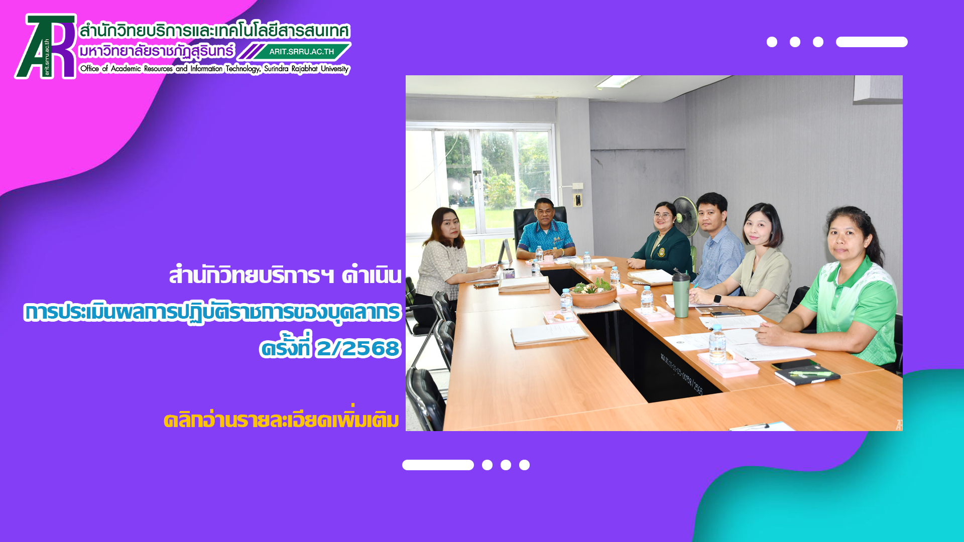 วันที่ 1 ตุลาคม 2568 เวลา 09.00 น. สำนักวิทยบริการและเทคโนโลยีสารสนเทศ ดำเนินการประเมินผลการปฏิบัติราชการของบุคลากร ครั้งที่ 2/2568 ณ ห้องประชุม Group Study Room ชั้น 1 อาคารสำนักวิทยบริการฯ โดย ผู้ช่วยศาสตราจารย์ ดร.สังวาลย์ ตุกพิมาย ผู้อำนวยการสำนักวิทยบริการฯ เป็นประธาน ในการนี้ ได้มีคณะกรรมการประเมินผลการปฏิบัติราชการฯ เข้าร่วมประเมิน