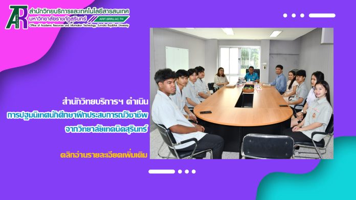 วันที่ 1 ตุลาคม 2568 เวลา 10.00 น. ผู้ช่วยศาสตราจารย์ ดร.สังวาลย์ ตุกพิมาย ผู้อำนวยการสำนักวิทยบริการฯ เป็นประธานการปฐมนิเทศนักศึกษาฝึกประสบการณ์วิชาชีพ จากวิทยาลัยเทคนิคสุรินทร์ ณ ห้องประชุม Group Study Room ชั้น 1 อาคารสำนักวิทยบริการฯ โดยมีผู้บริหารเข้าร่วมการปฐมนิเทศฯ