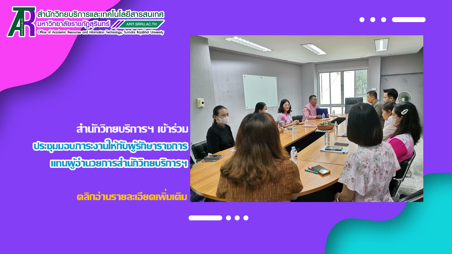 วันที่ 14 ตุลาคม 2568 เวลา 11.00 น. สำนักวิทยบริการและเทคโนโลยีสารสนเทศ โดย ผู้ช่วยศาสตราจารย์ ดร.สังวาลย์ ตุกพิมาย ผู้อำนวยการสำนักวิทยบริการฯ พร้อมด้วยผู้บริหาร และบุคลากรสำนักวิทยบริการฯ เข้าร่วมประชุมมอบภาระงานให้กับผู้รักษาราชการแทนผู้อำนวยการสำนักวิทยบริการฯ ในการนี้ ผู้ช่วยศาสตราจารย์ ดร.กฤช ตรองจิตต์ ผู้ช่วยอธิการบดีด้านจัดหารายได้และสิทธิประโยชน์ เป็นผู้รับมอบ ณ ห้องประชุม Group Study Room ชั้น 1 อาคารสำนักวิทยบริการฯ