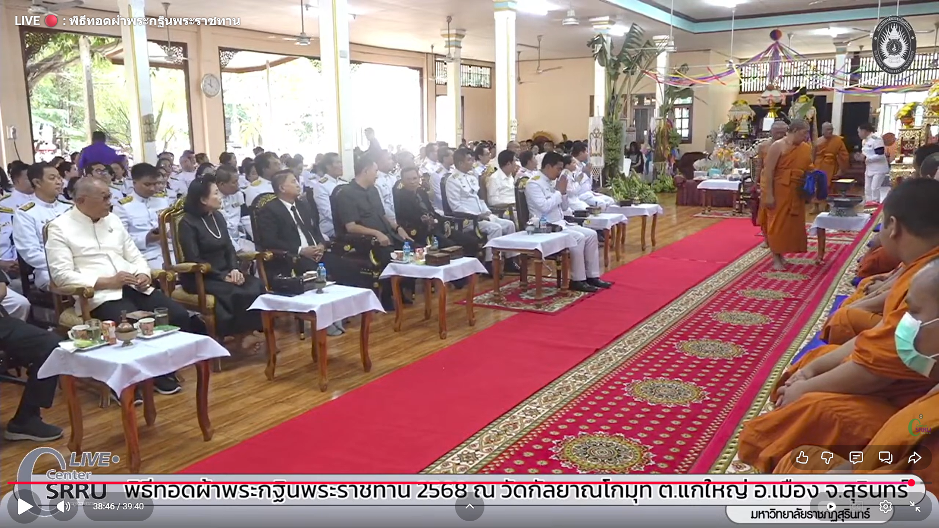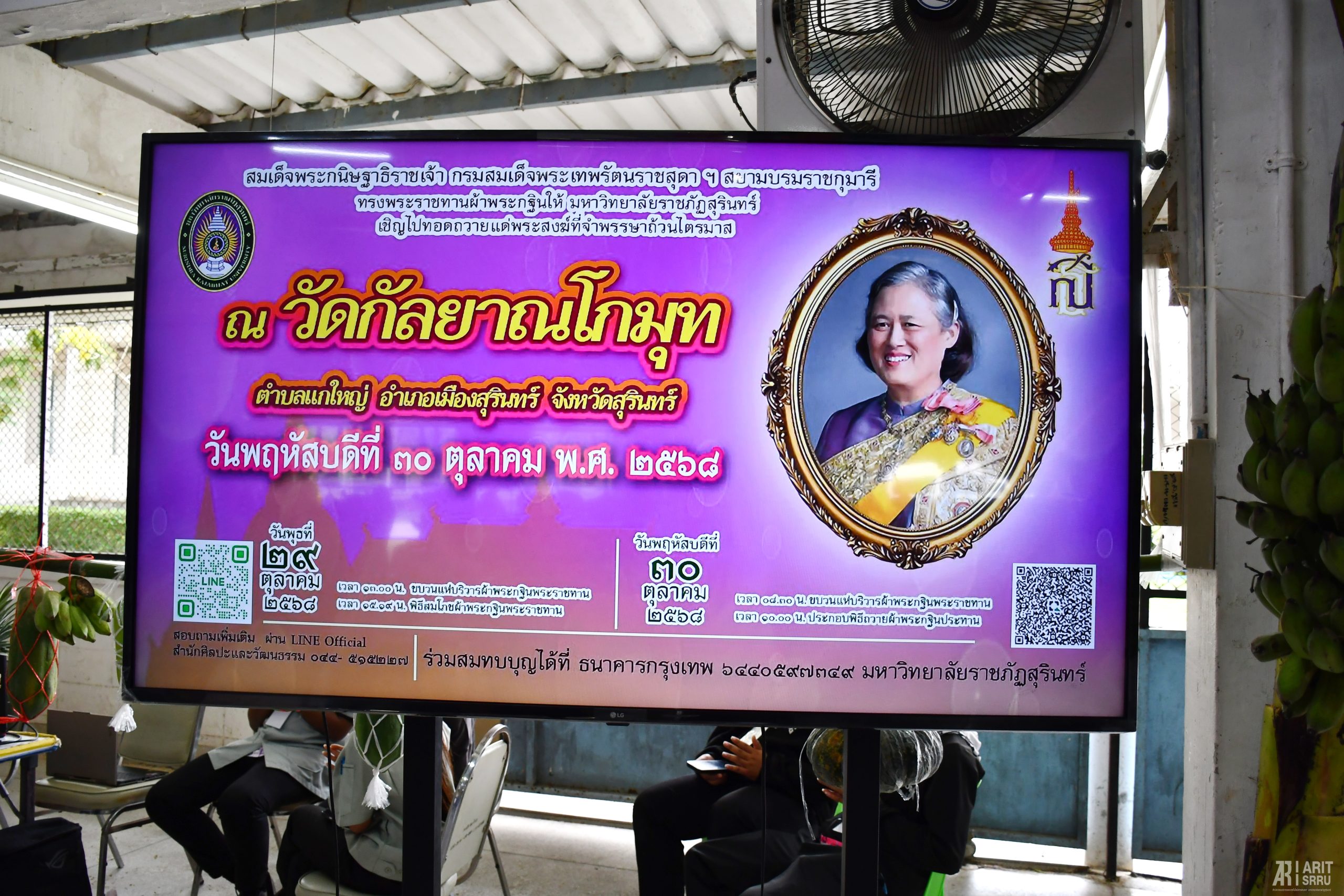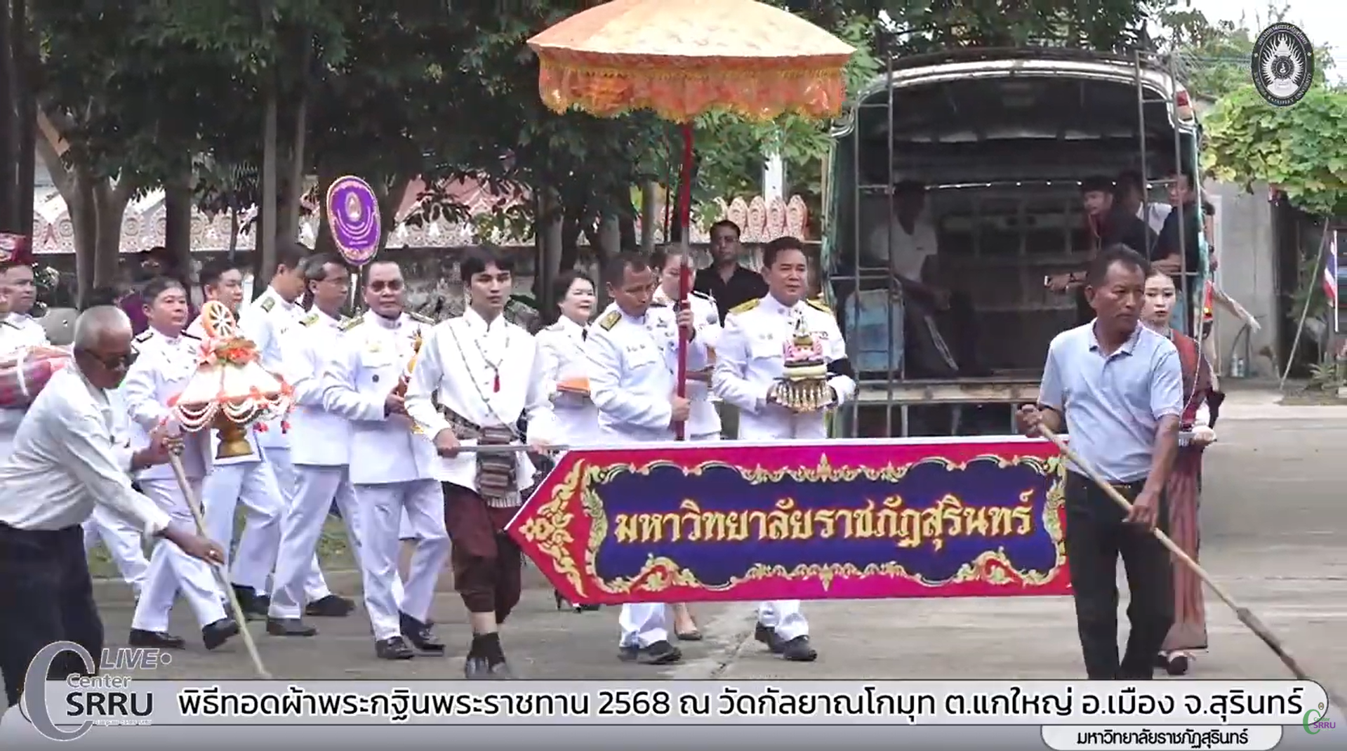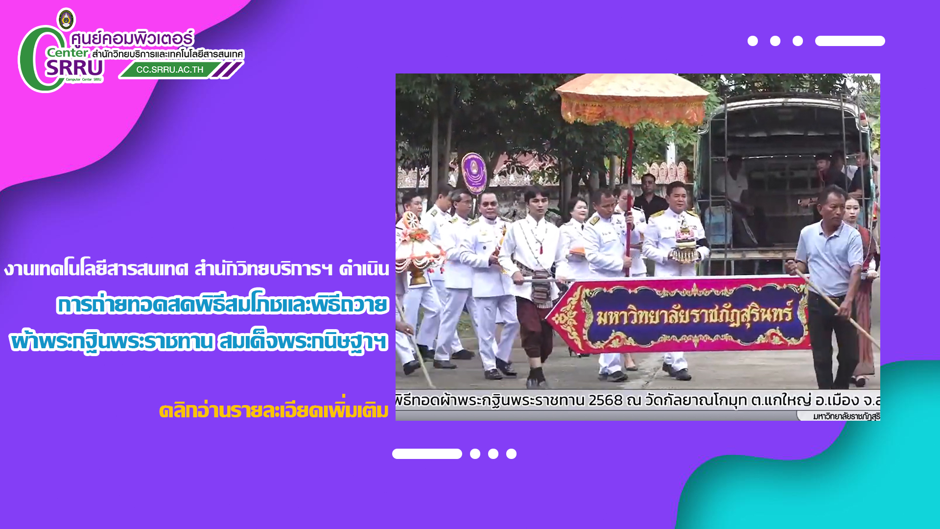 วันที่ 30 ตุลาคม 2568 เวลา 09.00 น. งานเทคโนโลยีสารสนเทศ สำนักวิทยบริการและเทคโนโลยีสารสนเทศ ดำเนินการถ่ายทอดสดพิธีสมโภชและพิธีถวายผ้าพระกฐินพระราชทาน สมเด็จพระกนิษฐาธิราชเจ้า กรมสมเด็จพระเทพรัตนราชสุดาฯ สยามบรมราชกุมารี มหาวิทยาลัยราชภัฏสุรินทร์ ประจำปี 2568 ระหว่างวันที่ 29 – 30 ตุลาคม 2568 ณ หอรประชุมใหญ่ มหาวิทยาลัยราชภัฏสุรินทร์ และ วัดกัลยาณโกมุท บ้านแกน้อย ตำบลแกใหญ่ อำเภอเมืองสุรินทร์ จังหวัดสุรินทร์