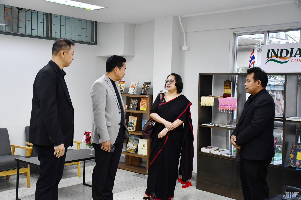 วันที่ 12 ธันวาคม 2568 เวลา 09.30 น. มหาวิทยาลัยราชภัฏสุรินทร์ โดย รองศาสตราจารย์ ดร.ฉลอง สุขทอง อธิการบดีมหาวิทยาลัยราชภัฏสุรินทร์ นำคณะผู้บริหารร่วมต้อนรับ Ms.Paulomi Tripahi Deputy อุปทูต สถานเอกอัครราชทูตอินเดียประจำประเทศไทย และคณะ ในการนี้ได้ร่วมเปิด “มุมอินเดีย (India Corner)” ณ บริเวณ ชั้น 1 อาคารสำนักวิทยบริการและเทคโนโลยีสารสนเทศ เวลา 10.00 น. ได้เข้าร่วมประชุม เพื่อสร้างเครือข่ายความร่วมมือในการแลกเปลี่ยนเรียนรู้ทางวิชาการ และทางด้านวัฒนธรรม ณ ห้องประชุมฉัททันต์ ชั้น 2 อาคาร 31 มหาวิทยาลัยราชภัฏสุรินทร์
