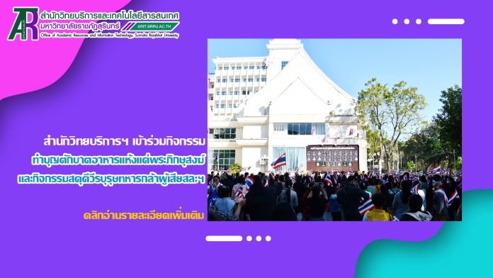 วันที่ 29 ธันวาคม 2568 บุคลากรสำนักวิทยบริการและเทคโนโลยีสารสนเทศ ร่วมกิจกรรมทำบุญตักบาตอาหารแห้งแด่พระภิกษุสงฆ์และสามเณร จำนวน 69 รูป เนื่องในเทศกาลส่งท้ายปีเก่า ต้อนรับปีใหม่ 2569 และกิจกรรมสดุดีวีรบุรุษทหารกล้าผู้เสียสละปกป้องแผ่นดินไทย และน้อมรำลึกถึงคุณงามความดีอันเป็นแบบอย่างแห่งความเสียสละเพื่อชาติ ศาสนา และพระมหากษัตริย์ ณ บริเวณหน้าอาคาร 31 มหาวิทยาลัยราชภัฏสุรินทร์
