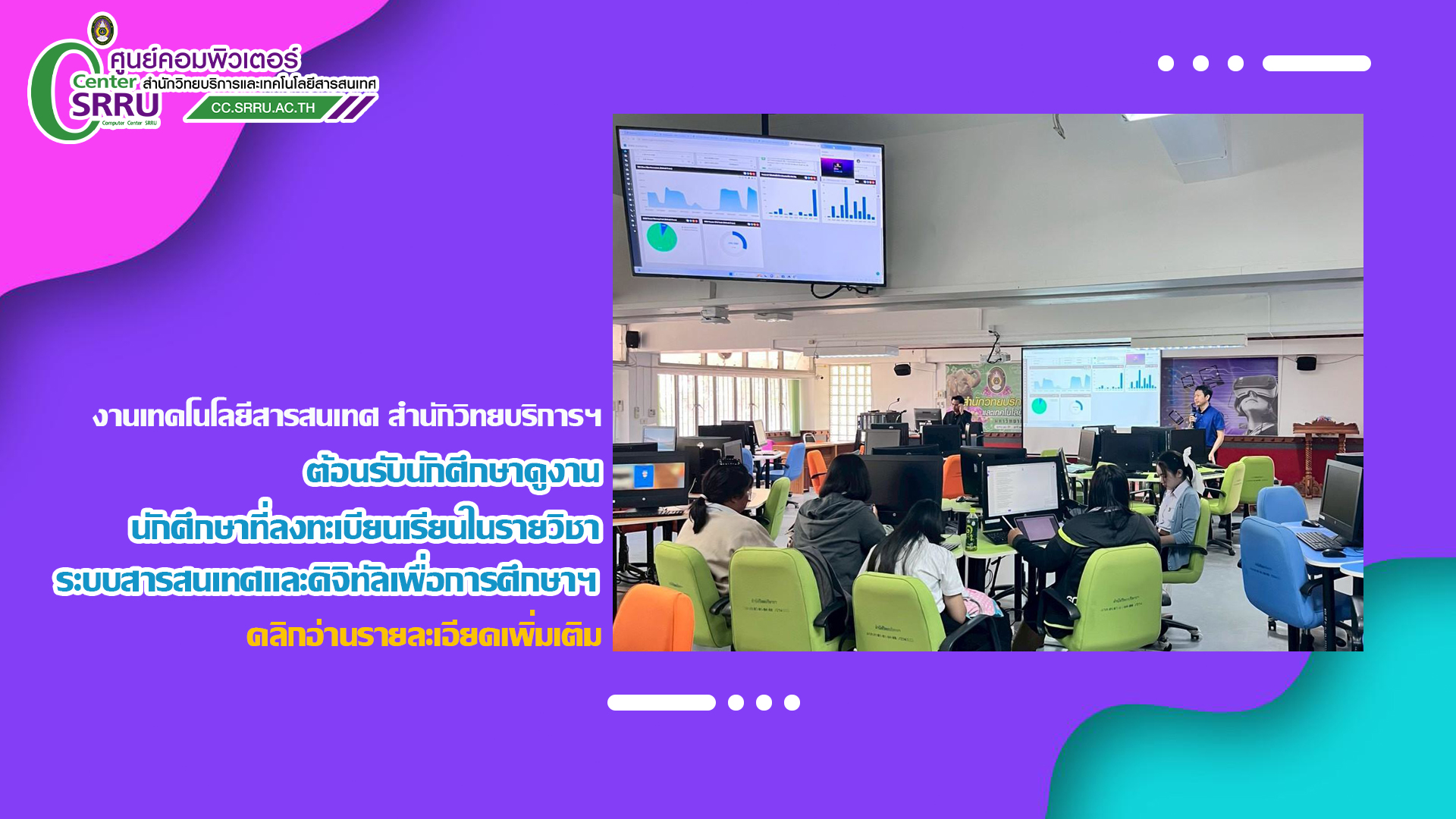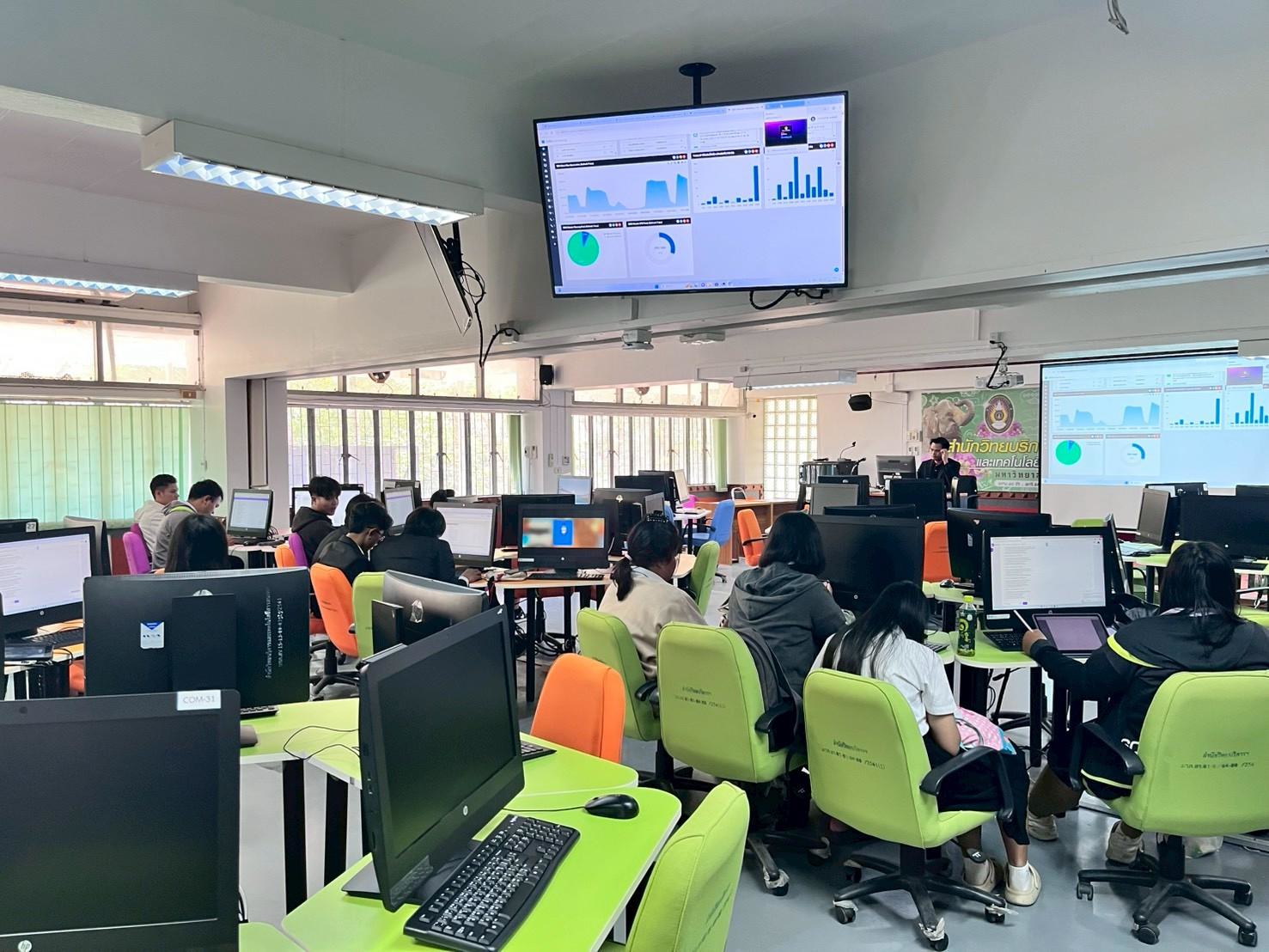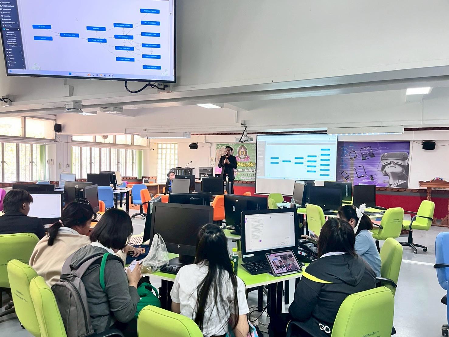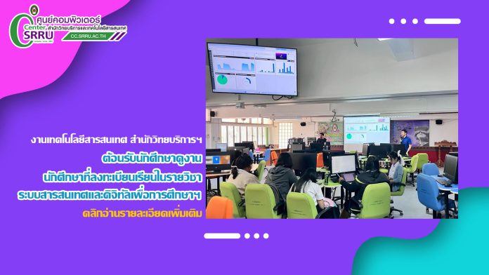 วันพุธที่ 14 มกราคม 2569 อาจารย์ ดร.สมเกียรติ เพ็ชรมาก อาจารย์ผู้สอนประจำสาขาวิชาเทคโนโลยีดิจิทัลเพื่อการศึกษา คณะครุศาสตร์ มหาวิทยาลัยราชภัฏสุรินทร์ นำนักศึกษาเข้าศึกษาดูงาน ณ งานเทคโนโลยีสารสนเทศ สำนักวิทยบริการฯ ในรายวิชาระบบสารสนเทศและดิจิทัลเพื่อการศึกษา และรายวิชา การจัดทำฐานข้อมูลทางการศึกษา (Big Data Technology) เพื่อให้นักศึกษาเกิดความรู้ ความเข้าใจ และ ประสบการณ์จากสภาพการทำงานจริงเกี่ยวกับ ระบบเครือข่ายคอมพิวเตอร์ ระบบความมั่นคงปลอดภัยของ ระบบสารสนเทศ และระบบศูนย์กลางข้อมูล (Data Center) ซึ่งเป็นองค์ประกอบสำคัญของการบริหารจัดการ ระบบสารสนเทศในสถาบันอุดมศึกษา