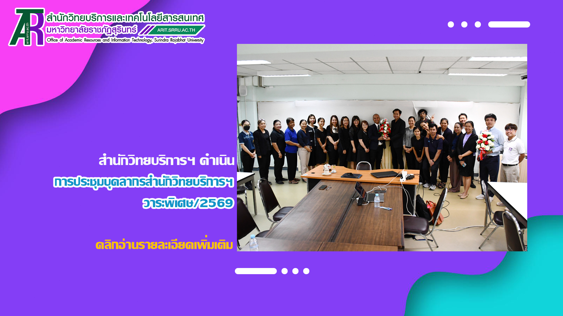 วันที่ 19 มกราคม 2569 เวลา 14.30 น. สำนักวิทยบริการและเทคโนโลยีสารสนเทศ ดำเนินการประชุมบุคลากรสำนักวิทยบริการฯ วาระพิเศษ/2569 ณ ห้องโสตทัศนวัสดุ 2 ชั้น 4 อาคารสำนักวิทยบริการฯ โดย อาจารย์ ดร.สมเกียรติ เพ็ชรมาก ผู้อำนวยการสำนักวิทยบริการฯ เป็นประธานการประชุม ซึ่งมีผู้บริหาร และบุคลากรสำนักวิทยบริการฯ เข้าร่วมประชุมอย่างพร้อมเพรียงกัน