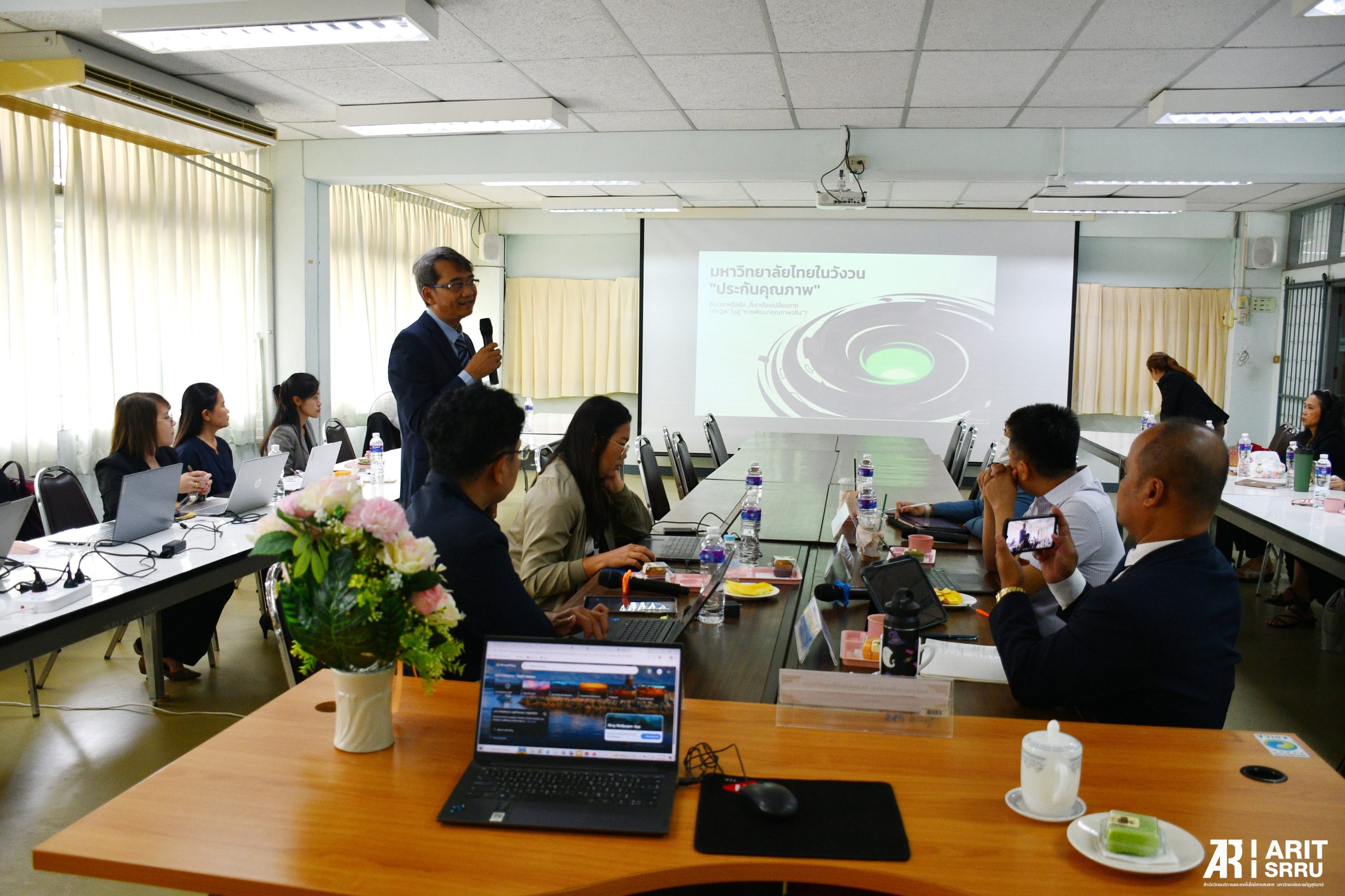วันที่ 27 เมษายน 2569 สำนักวิทยบริการและเทคโนโลยีสารสนเทศ ดำเนินโครงการอบรมเชิงปฏิบัติการ ทบทวนแผนยุทธศาสตร์องค์กรเพื่อการขับเคลื่อนการบริหารสู่ยุคดิจิทัล ณ ห้องโสตทัศนวัสดุ 2 ชั้น 4 อาคารสำนักวิทยบริการฯ โดย อาจารย์ ดร.สมเกียรติ เพ็ชรมาก ผู้อำนวยการสำนักวิทยบริการฯ เป็นประธานการเปิดโครงการ ในการนี้ ผู้บริหารและบุคลากรสำนักวิทยบริการฯ เข้าร่วมการอบรม ซึ่งภาคเช้ามีกิจกรรมอบรมเรื่องกลยุทธ์สู่ความสำเร็จในการจัดทำคำขอตั้งงบประมาณรายจ่าย โดย นางสาวพนิดา โสนทอง และนางสาวเมลดา ชุมชัยเวทย์ เป็นวิทยากร กิจกรรมอบรมโครงร่างองค์กรของหน่วยงานสนับสนุนตามนาวทาง SRRU QA โดย ผศ.อภิชากร ดวงแขเพ็ญศิริกุล และนายธนภัทร พิศเพ็ง เป็นวิทยากร กิจกรรมภาคบ่ายมีกิจกรรมวิเคราะห์บริบทองค์กร และกิจกรรมการทำ Strategy Map เชื่อมโยงจากยุทธศาสตร์สู่กลยุทธ์ มาตรการ เป้าหมายและตัวชี้วัด โดย ผศ.ดร.ธงชัย เจือจันทร์ อ.ศิรประภา รัตนรวมการ และนายโกสินทร์ มีชูสิน เป็นวิทยากร