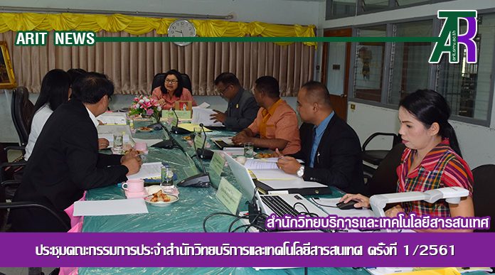 วันที่ 6 กันยายน 2561 ผู้ช่วยศาสตราจารย์ ดร.สันทนา กูลรัตน์ ผู้อำนวยการสำนักวิทยบริการและเทคโนโลยีสารสนเทศ เป็นประธานในการประชุมคณะกรรมการประจำสำนักวิทยบริการและเทคโนโลยีสารสนเทศ ครั้งที่ 1/2561 โดยมีกรรมการผู้ทรงคุณวุฒิ ประกอบด้วย ผู้ช่วยศาสตราจารย์ ดร.พรทิพา ดำเนิน ผู้ช่วยศาสตราจารย์ ดร.สุวัฒน์ บันลือ อาจารย์ ดร.วิไลวรรณ พรมสีใหม่ รองผู้อำนวยการสำนักวิทยบริการฯ ฝ่ายต่าง ๆ และผู้ปฏิบัติหน้าที่หัวหน้าสำนักงานผู้อำนวยการฯ เข้าร่วมประชุมอย่างพร้อมเพรียงกัน