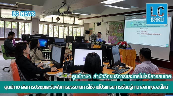 วันที่ 4 ตุลาคม 2561 ศูนย์ภาษา สำนักวิทยบริการและเทคโนโลยีสารสนเทศ จัดการประชุมและรับฟังการบรรยายการใช้งานโปรแกรมการเรียนรู้ภาษาอังกฤษออนไลน์ โดยได้รับเกียรติจากบุคลากร บริษัท ไอที เอ็นดูซอฟต์ จำกัด เป็นวิทยากรให้ความรู้ ในการนี้ได้รับร่วมมือจากบุคลากรของมหาวิทยาลัยราชภัฏสุรินทร์เข้าร่วมอย่างพร้อมเพรียงกัน