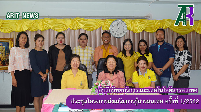 วันที่ 5 เมษายน 2562 เวลา 09.30 น. สำนักวิทยบริการและเทคโนโลยีสารสนเทศ มหาวิทยาลัยราชภัฏสุรินทร์ จัดประชุมโครงการส่งเสริมการรู้สารสนเทศ ครั้งที่ 1/2562 ณ ห้องประชุม ชั้น 4 อาคารสำนักวิทยบริการฯ โดยมี ผู้ช่วยศาสตราจารย์ ดร.สันทนา กูลรัตน์ ผู้อำนวยการสำนักวิทยบริการฯ เป็นประธานในการประชุม โดยมีผู้เข้าร่วมประชุมประกอบด้วย ผู้ช่วยศาสตราจารย์สังวาลย์ ตุกพิมาย รองผู้อำนวยการสำนักวิทยบริการฯ ฝ่ายวิทยบริการ อาจารย์ที่สอนรายวิชาทั่วไป (GE)และบุคลากรสำนักวิทยบริการฯ