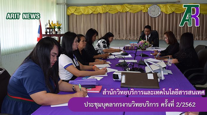 วันที่ 11 มิถุนายน 2562 เวลา 09.00 น. งานวิทยบริการ สำนักวิทยบริการและเทคโนโลยีสารสนเทศ มหาวิทยาลัยราชภัฏสุรินทร์ จัดประชุมบุคลากรงานวิทยบริการ ครั้งที่ 2/2562 ณ ห้องประชุม ชั้น 4 อาคารสำนักวิทยบริการฯ โดยมี ผู้ช่วยศาสตราจารย์สังวาลย์ ตุกพิมาย รองผู้อำนวยการสำนักวิทยบริการฯ ฝ่ายวิทยบริการ เป็นประธานในการประชุมบุคลากรงานวิทยบริการ สำนักวิทยบริการฯ โดยมีบุคลากรงานวิทยบริการ เข้าร่วมประชุม