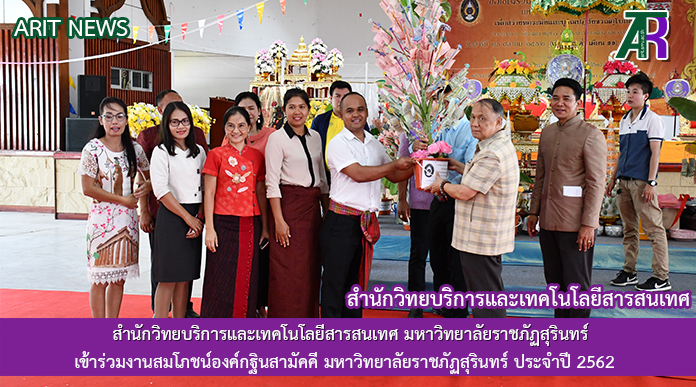 วันที่ 25 ตุลาคม 2562 เวลา 14.30 น. สำนักวิทยบริการและเทคโนโลยีสารสนเทศ มหาวิทยาลัยราชภัฏสุรินทร์ เข้าร่วมงานสมโภชน์องค์กฐินสามัคคี มหาวิทยาลัยราชภัฏสุรินทร์ ประจำปี 2562 นำโดยผู้บริหารสำนักวิทยบริการฯและบุคลากรสำนักวิทยบริการฯ เข้าร่วมงานกฐิน มหาวิทยาลัยราชภัฏสุรินทร์ ซึ่งจะนำไปทอดถวาย เพื่อสมทบทุนสร้างหอระฆังและบูรณปฏิสังขรณ์อุโบสถ ณ วัดบรมสุข หมู่ 7 ตำบลราม อำเภอเมือง จังหวัดสุรินทร์