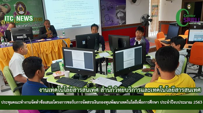 วันที่ 25 ธันวาคม 2562 งานเทคโนโลยีสารสนเทศ สำนักวิทยบริการและเทคโนโลยีสารสนเทศ จัดประชุมคณะทำงานจัดทำข้อเสนอโครงการขอรับการจัดสรรเงินกองทุนพัฒนาเทคโนโลยีเพื่อการศึกษา ประจำปีงบประมาณ 2563 โดยมี อาจารย์ ดร.ธัญเทพ สิทธิเสือ ผู้ช่วยอธิการบดีฝ่ายกิจการพิเศษ เป็นประธานในการประชุม โดยมีอาจารย์และบุคลากรงานเทคโนโลยีสารสนเทศ เข้าร่วมประชุม