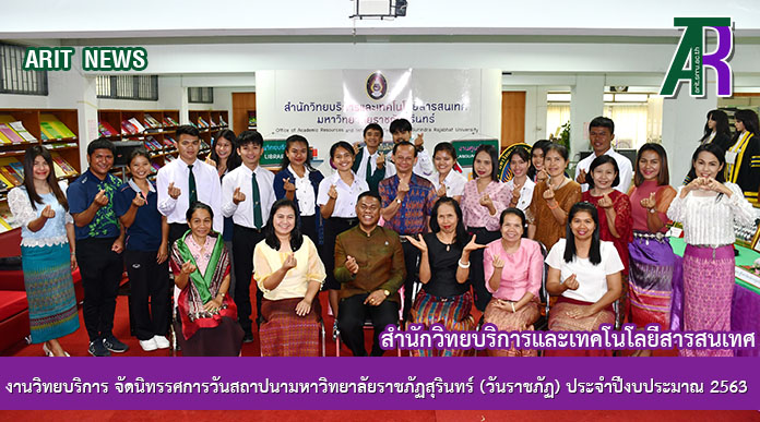 วันที่ 14 กุมภาพันธ์ 2563 งานวิทยบริการ สำนักวิทยบริการและเทคโนโลยีสารสนเทศ จัดนิทรรศการวันสถาปนามหาวิทยาลัยราชภัฏสุรินทร์ (วันราชภัฏ) ประจำปีงบประมาณ 2563 ในการนี้ผู้ช่วยศาสตราจารย์สังวาลย์ ตุกพิมาย รองผู้อำนวยการสำนักวิทยบริการฯ ฝ่ายงานวิทยบริการ เป็นประธานในการเปิดนิทรรศการ โดยมีอาจารย์ บุคลากรและนักศึกษาเข้าร่วมกิจกรรมต่างๆ ของการจัดนิทรรศการ