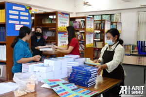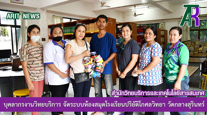 วันที่ 28 – 30 กันยายน 2563 นางพัชรี จุลหงษ์ หัวหน้างานวิทยบริการนำบุคลากรงานวิทยบริการ สำนักวิทยบริการและเทคโนโลยีสารสนเทศ จัดห้องสมุดโรงเรียนปริยัติโกศลวิทยา วัดกลางสุรินทร์ อ.เมือง จ.สุรินทร์ โดยมีบรรณารักษ์ห้องสมุดของโรงเรียนร่วมให้การต้อนรับและอำนวยสะดวกในการดำเนินงาน ในการนี้ บรรณารักษ์ของงานวิทยบริการได้คัดแยกหนังสือ จำนวน 10 หมวด วิเคราะห์หนังสือในบางส่วนเพื่อสะดวกต่อการบริการยืม – คืนหนังสือ ติดแถบหนังสือแทนการให้หมวดหมู่ฯลฯ